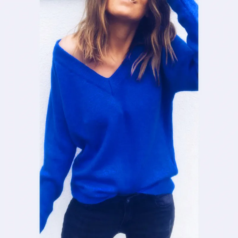 Женский трикотажный свитер с длинным рукавом и V-образным вырезом