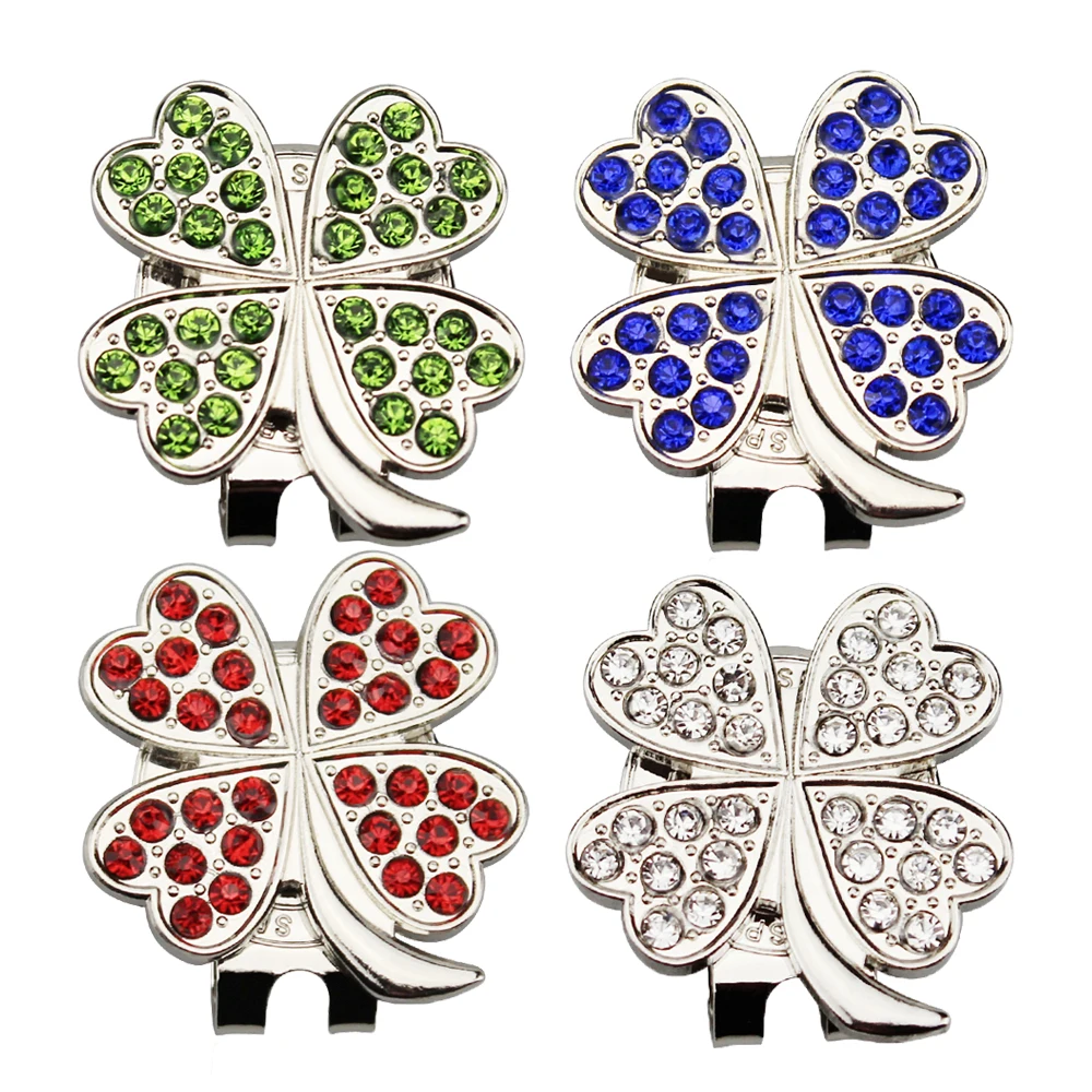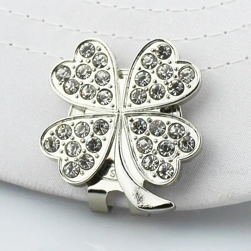Новый красивый хрустальный четырехлистный клевер для гольфа, шляпа с зажимом для гольфа, маркер для мяча для гольфа, оптовая продажа