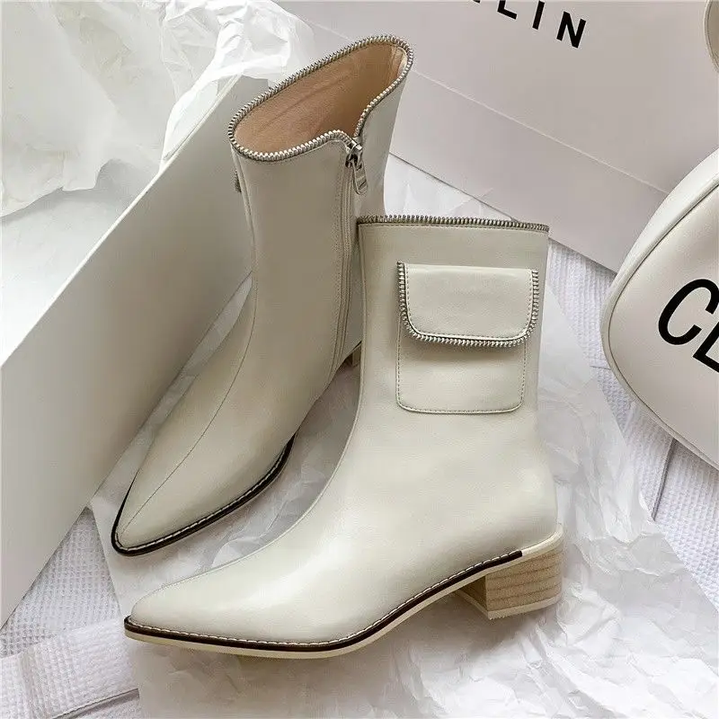 Женские ботинки на среднем каблуке, Теплые ботильоны на молнии, модные современные ботинки-гладиаторы, Осень-зима 2021