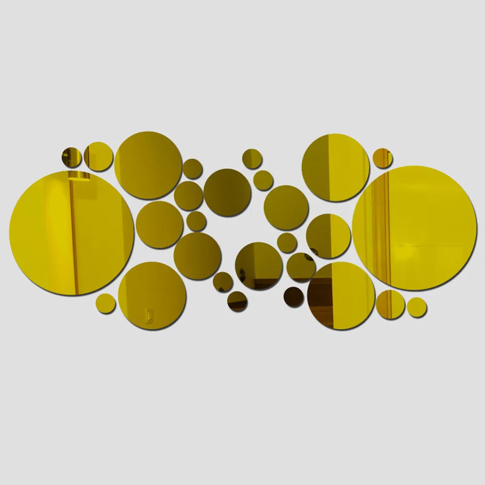 28 шт.компл. из круглое декоративное зеркало наклеек на стену украшение спальни гостиной акриловая комбинация зеркальные наклейки на стену