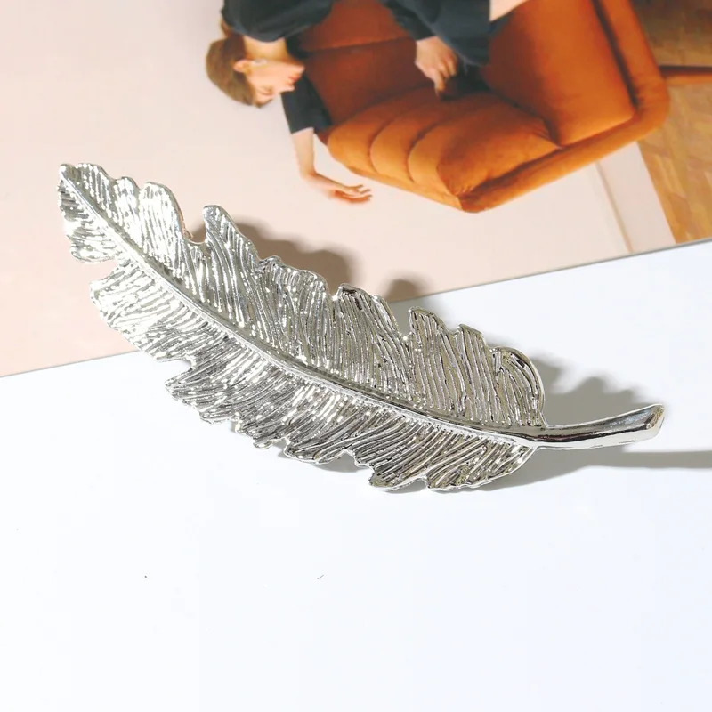 Заколка для волос женская с листьями и пером, модная металлическая ...