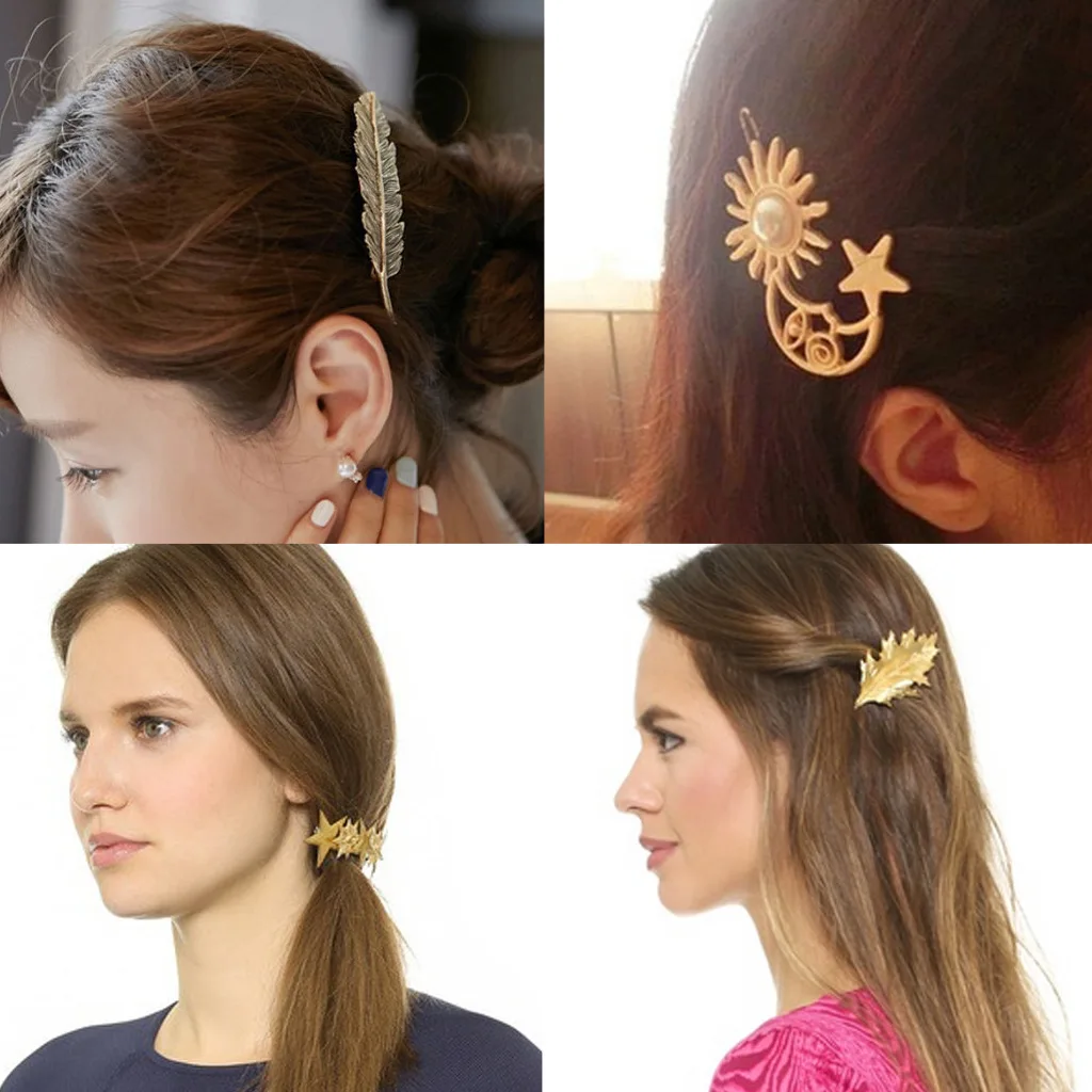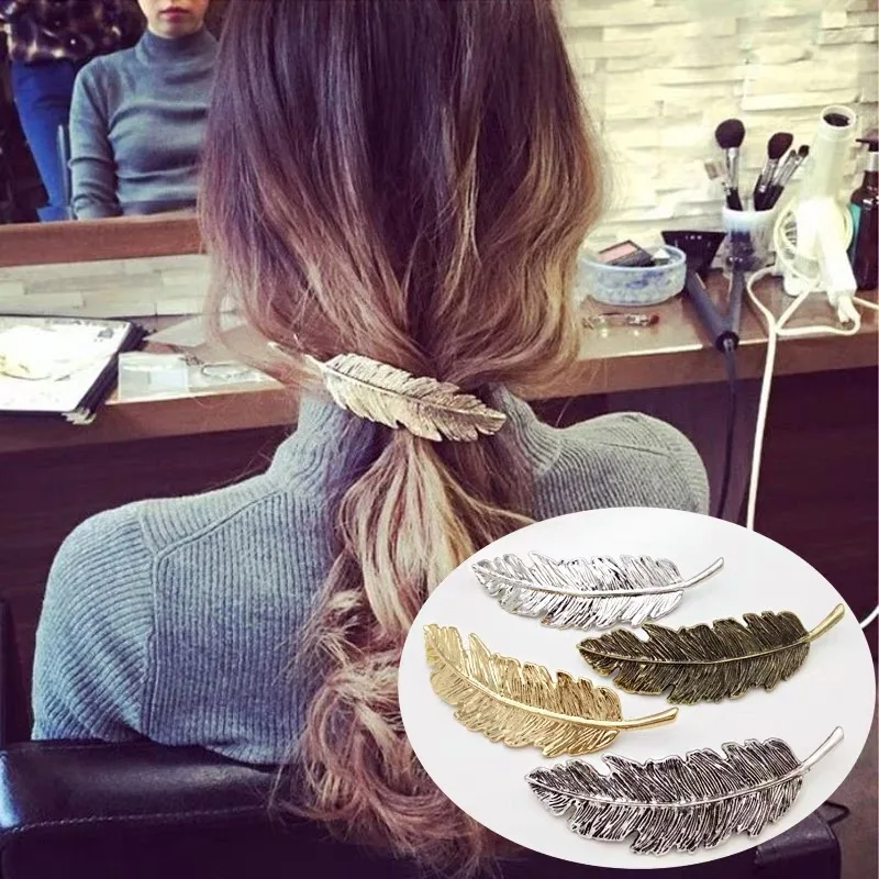 Новинка, Винтажная заколка для волос из сплава, металлические заколки в форме перьев и листьев для женщин, аксессуары для волос женский головной Убор