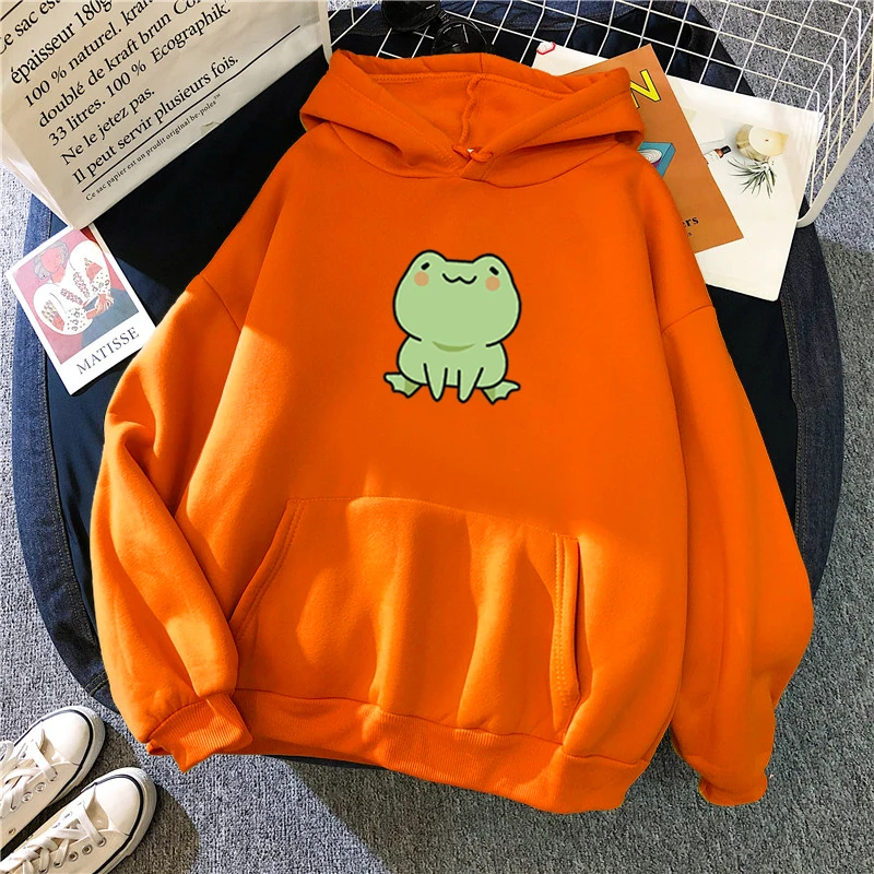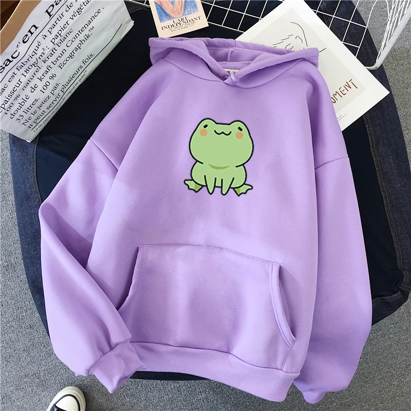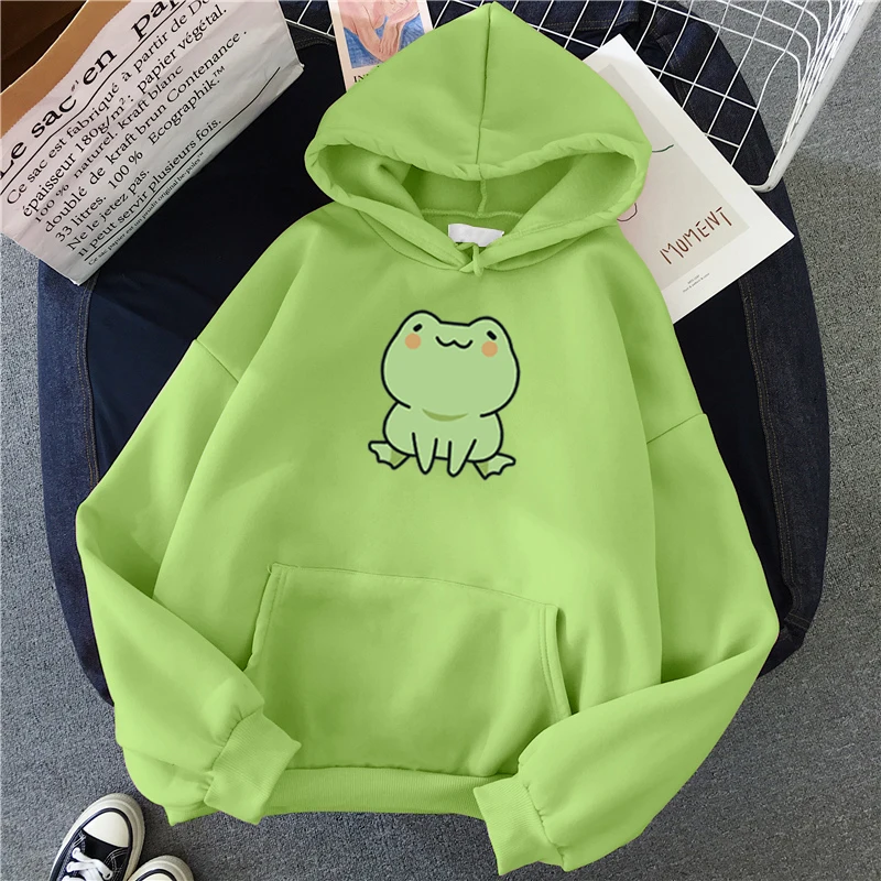 Свитшот в стиле оверсайз с лягушкой, одежда в стиле Харадзюку, с длинным рукавом и капюшоном, кавайная Толстовка для девочек, Зимние толстовки с карманами, зеленые толстовки