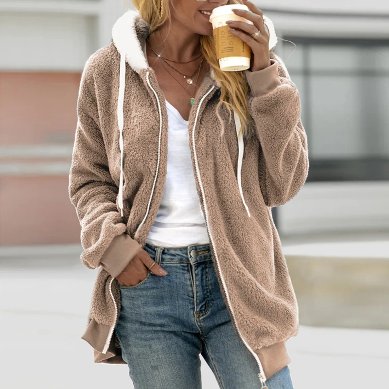 Модные женские Топы с длинным рукавом, толстовки, куртка, уличная одежда, Женская Повседневная Свободная Толстовка с капюшоном, осенне-зимнее флисовое пальто на молнии