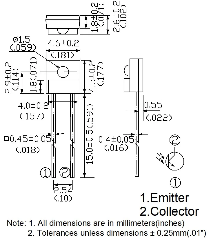 10 пар, бокового обзора, пара ИК-светодиодов 940 нм, излучающий диод SIR4045 и фототранзистор SGPT4045