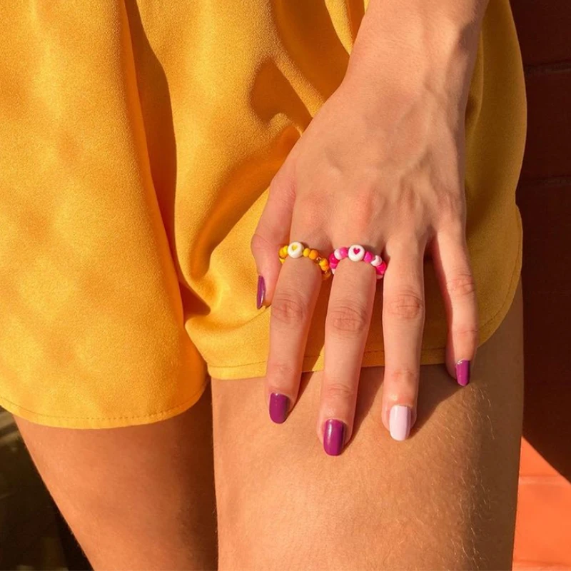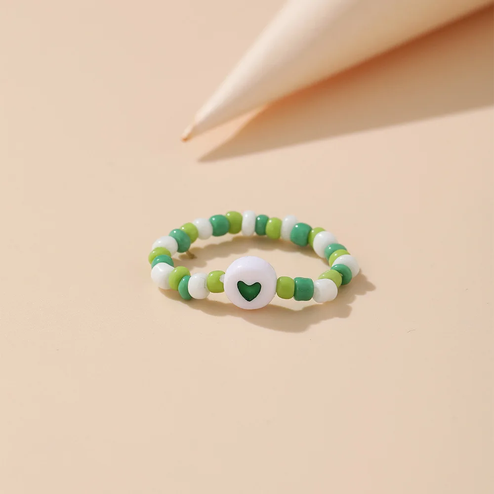 Модное кольцо с красочным сердцем Корейская версия кольцо с бусинами ручной работы рисовые бусины Кольцо с маленьким цветком для женщин и девочек ювелирные изделия кольца бижутерия