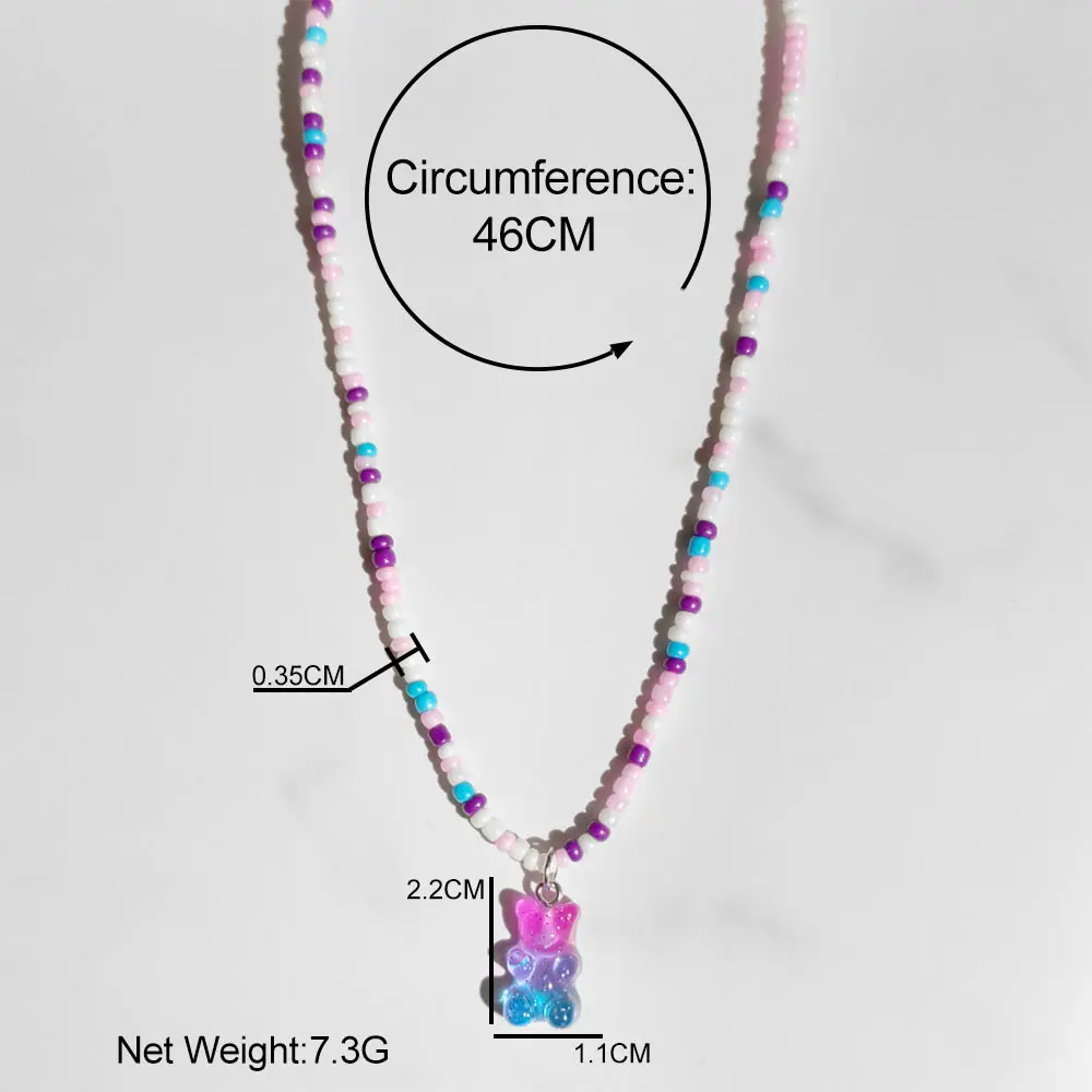 Новинка 2021, ожерелье из бисера радужного цвета с полимерным мишко...