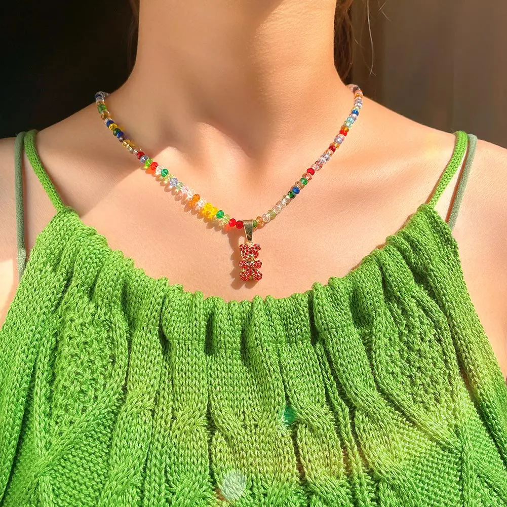 Ожерелье-чокер ручной работы с бисером яркого желейного медведя, ож...