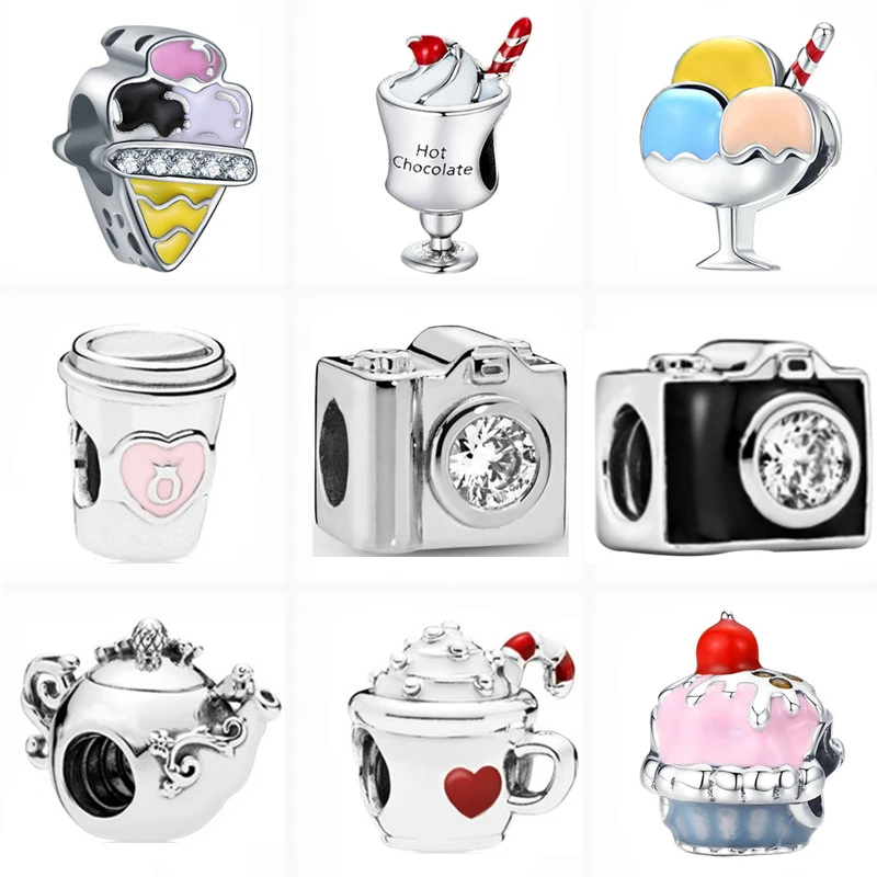Новое поступление, кофейная чашка, чайник, мороженое, модные Гламурные бусины, подходят к оригинальным шармам Pandora, серебряный браслет, DIY ювелирные изделия, подарок