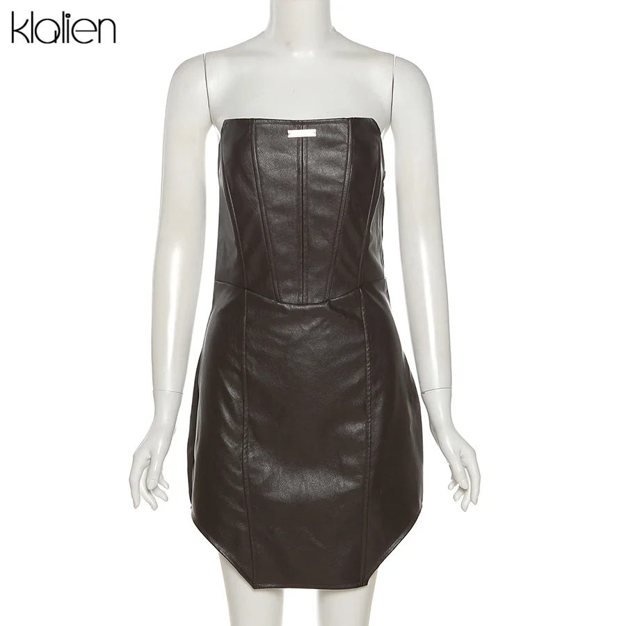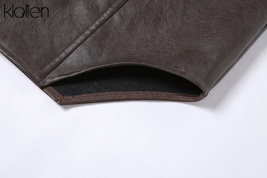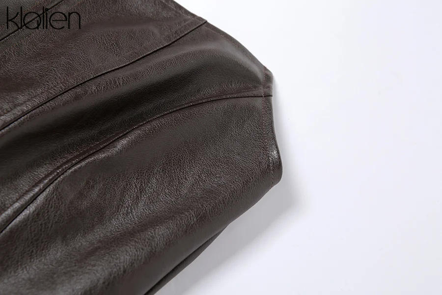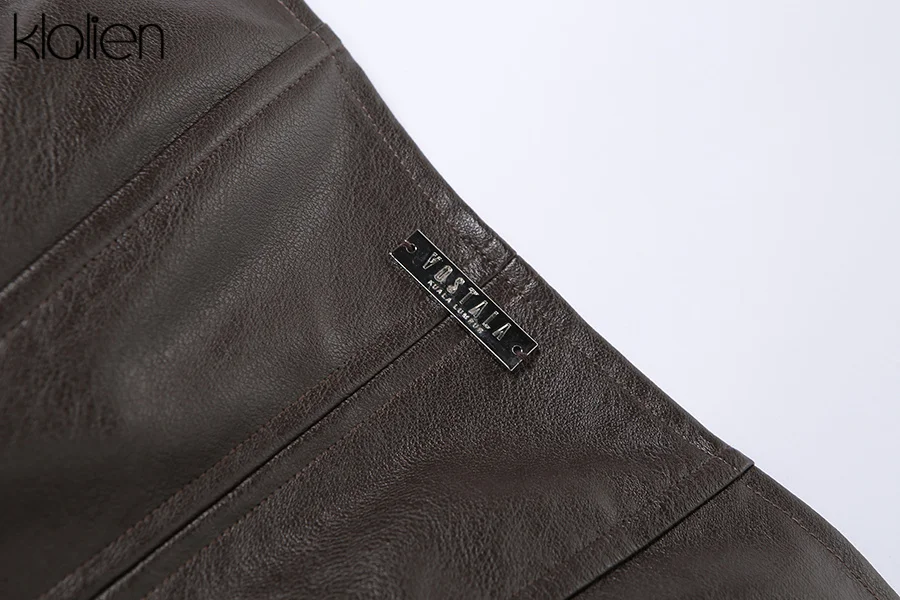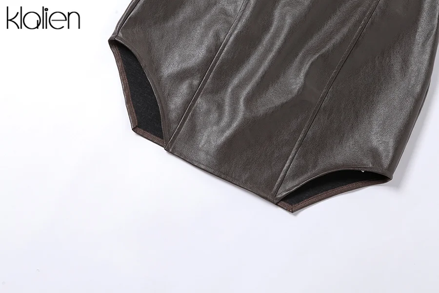 KLALIEN модное повседневное пальто с отложным воротником на молнии из искусственной кожи для женщин уличная одежда короткая куртка однотонная черная Клубная одежда Y2K
