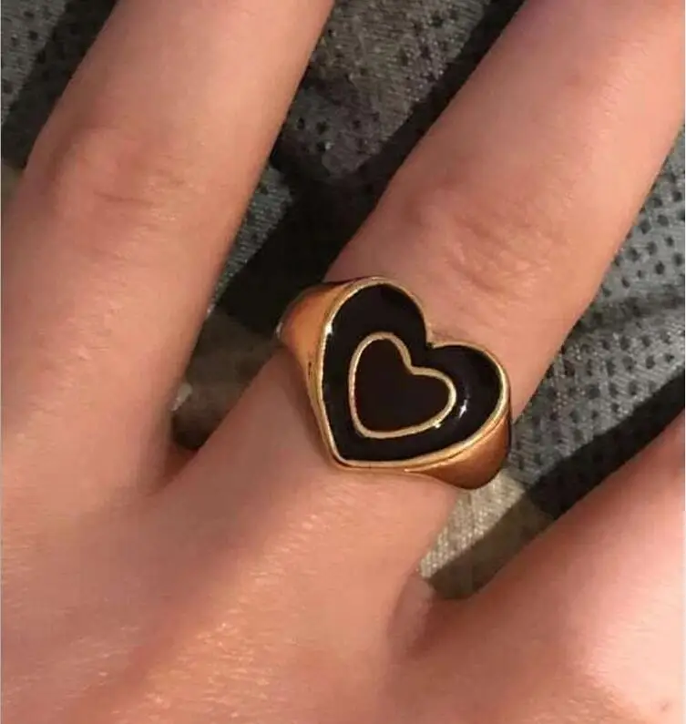 Новинка 2021, корейские трендовые винтажные двухслойные капающие эмалевые цветные контрастные металлические кольца в форме сердца для женщин, ювелирные изделия для пар