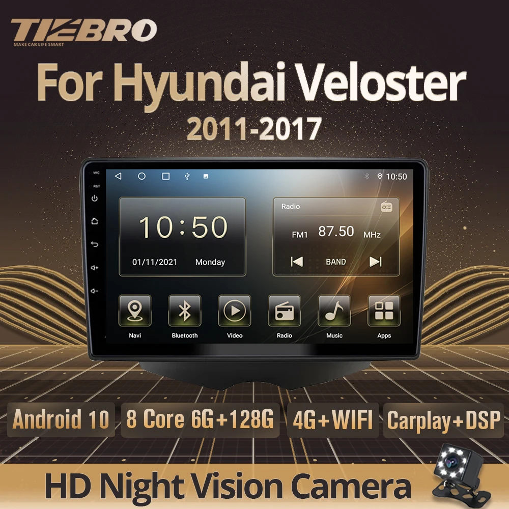Автомобильный радиоприемник Tiebro 2DIN Android 10 для Hyundai Veloster 2011-2017 GPS-навигация автомобильное радио Автомобильный стереоbluetooth плеер Carplay DSP