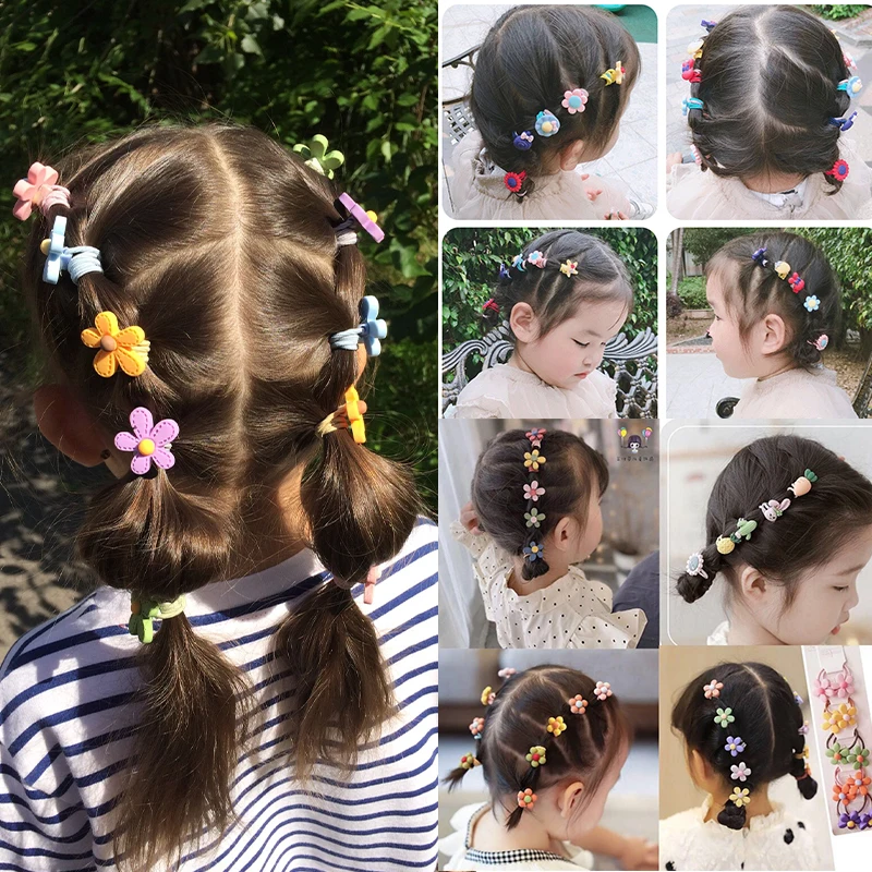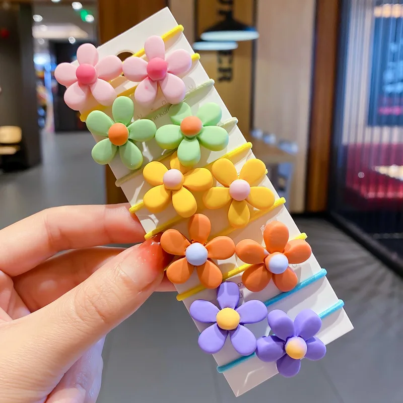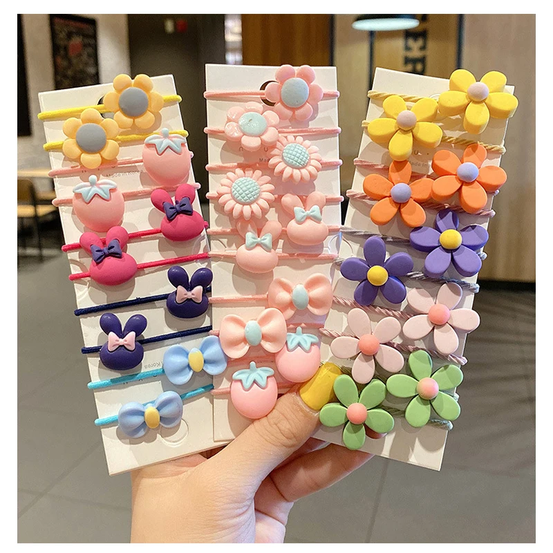 10 шт.компл. новые милые детские резинки для волос с цветком из мультфильма для девочек детские резинки для волос для конского хвоста эластичные резинки для волос модные аксессуары для волос