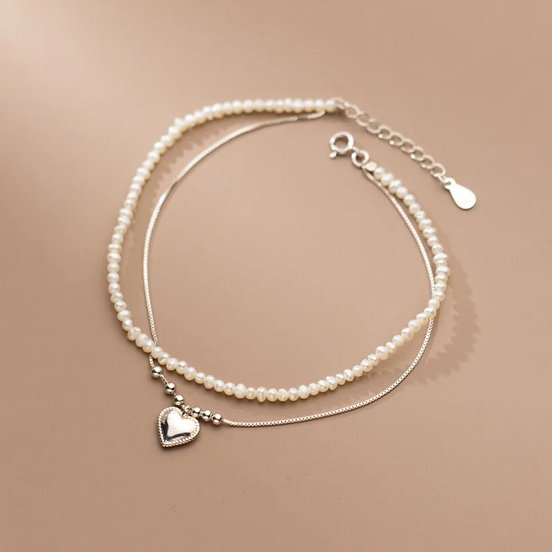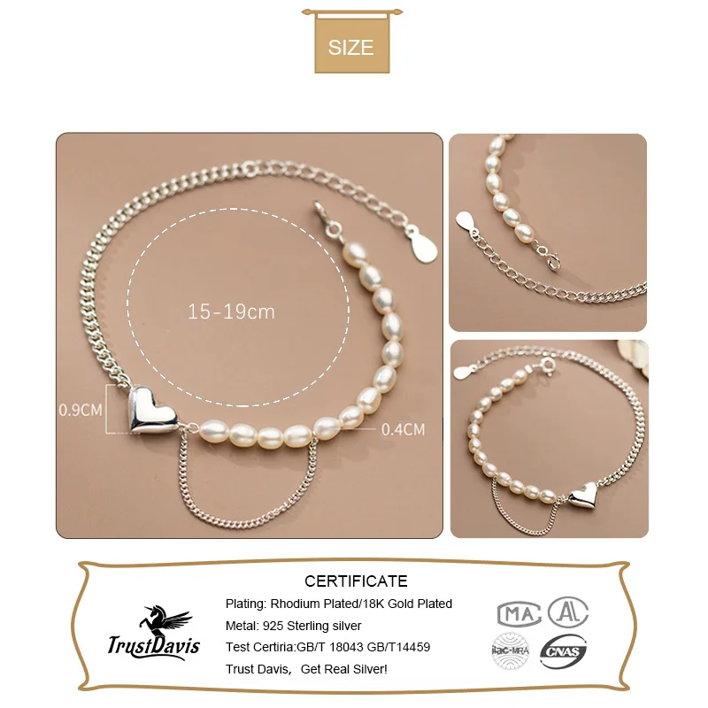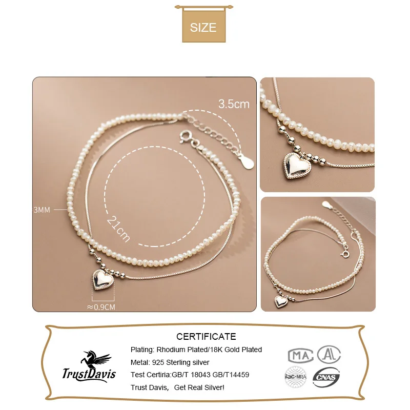 Trustdavis роскошные 925 Стерлинговое Серебро натуральный жемчуг женский браслет на ногу сердце цепочка браслет DA2405