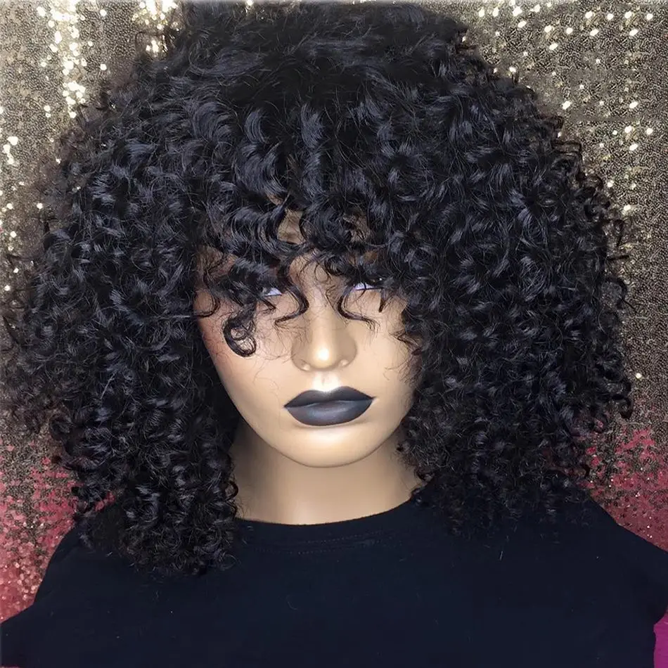 Кудрявые человеческие волосы Джерри парики с челкой полная машина сделал парики Выделите мед блонд цветные парики для женщин перуанские волосы Remy