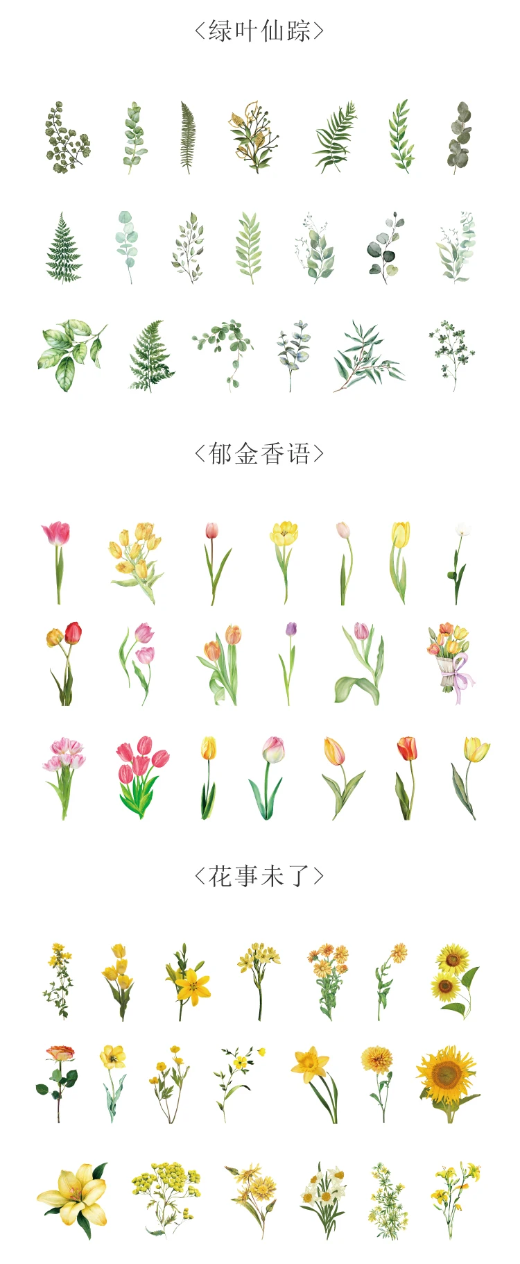 40 звёзд, кавайные канцелярские наклейки, растения, цветы, рукодели...