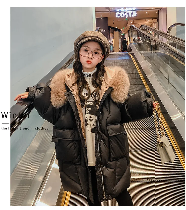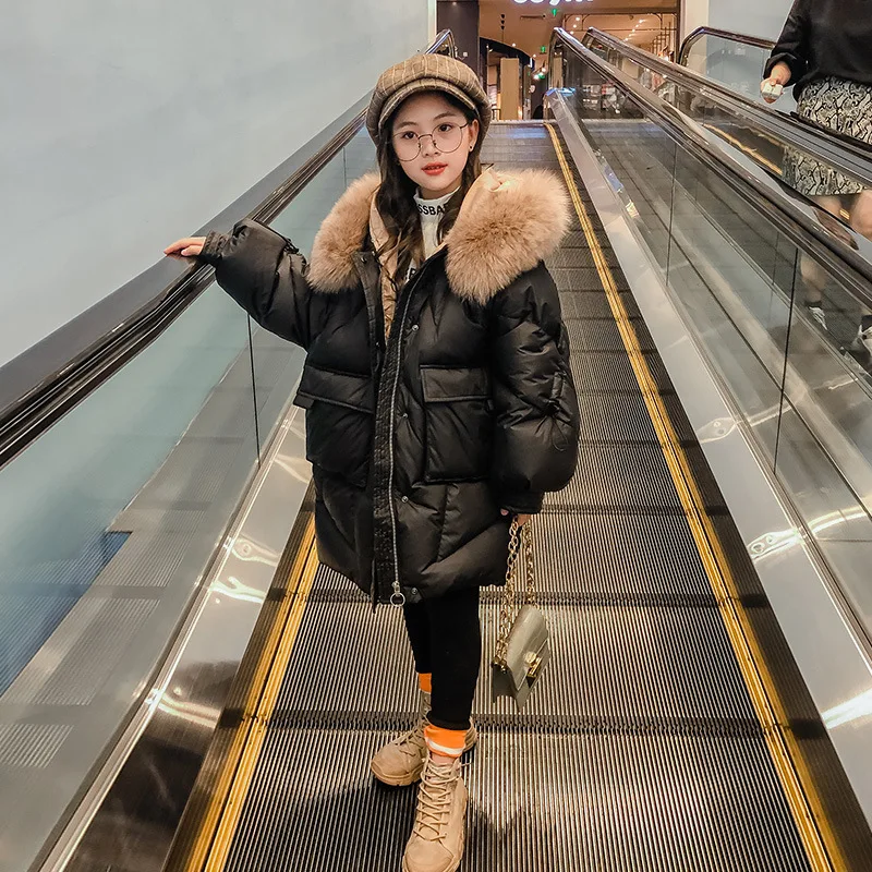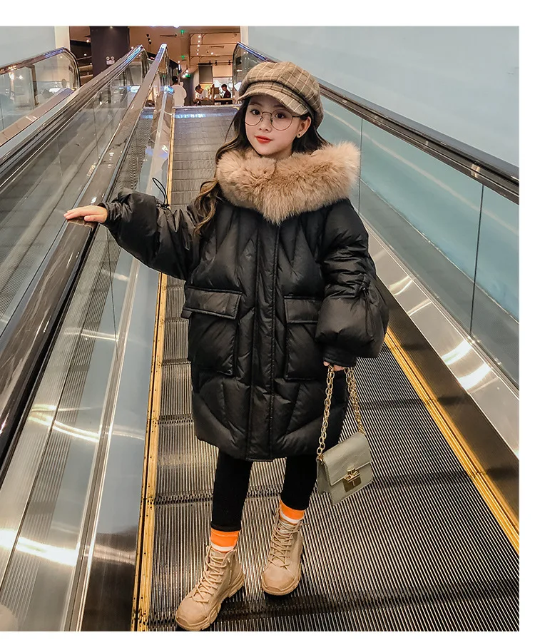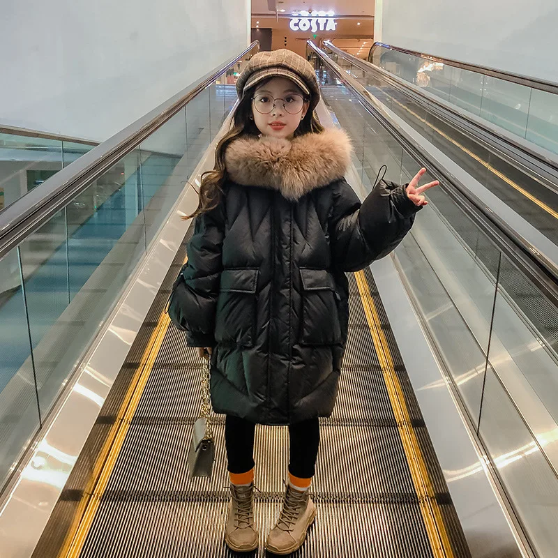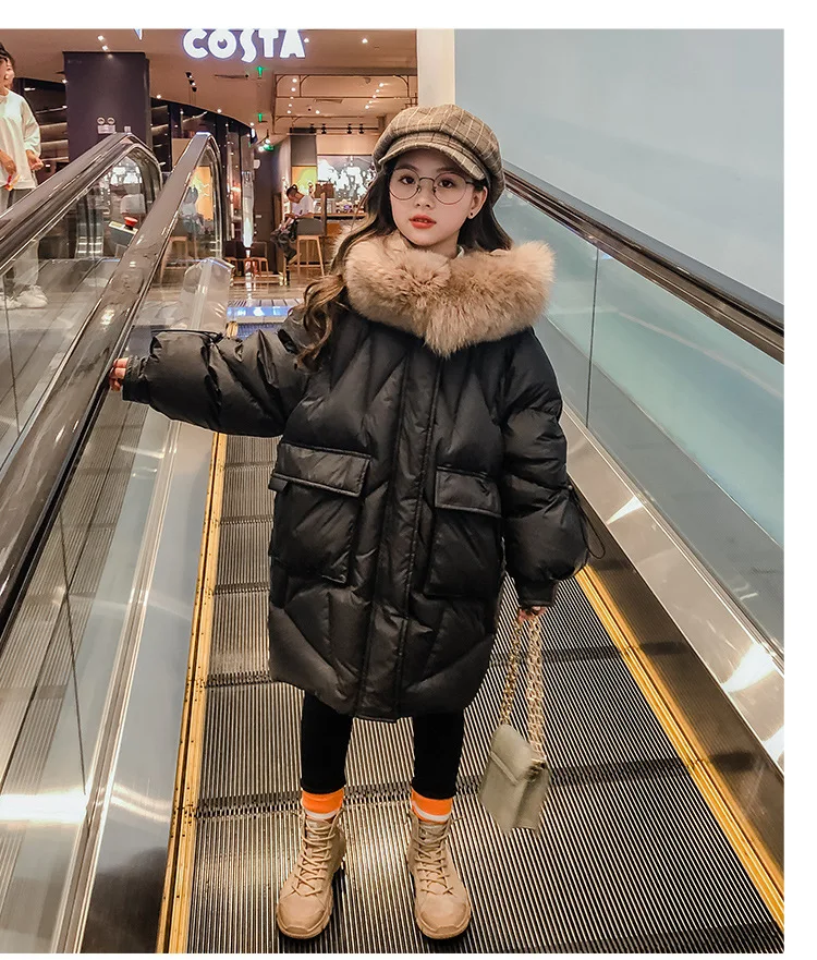Детский Зимний пуховик с капюшоном, на утином пуху