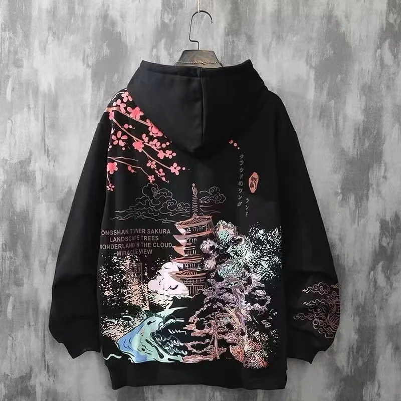 Мужская толстовка с капюшоном, в китайском стиле Харадзюку