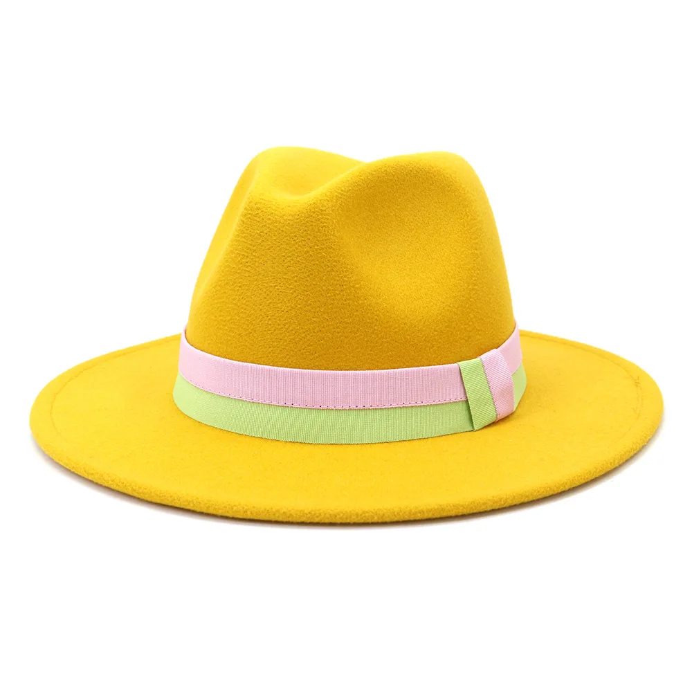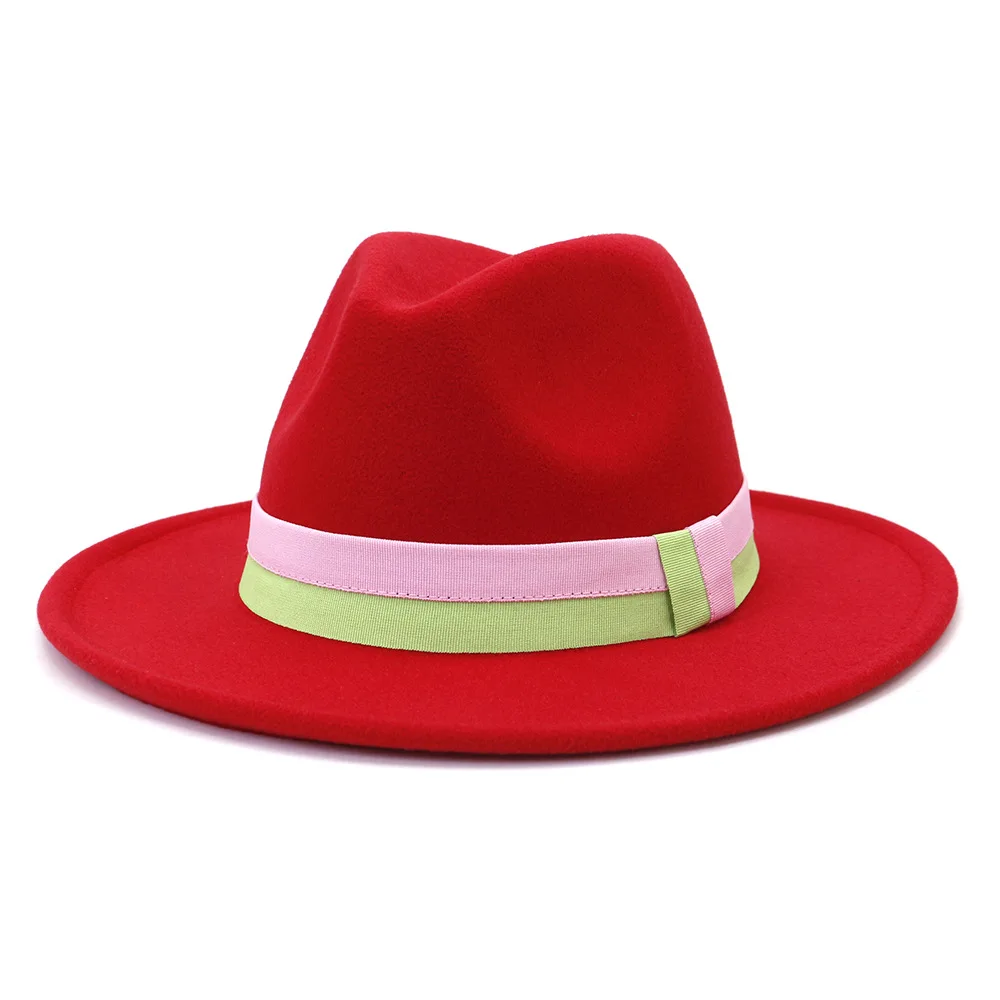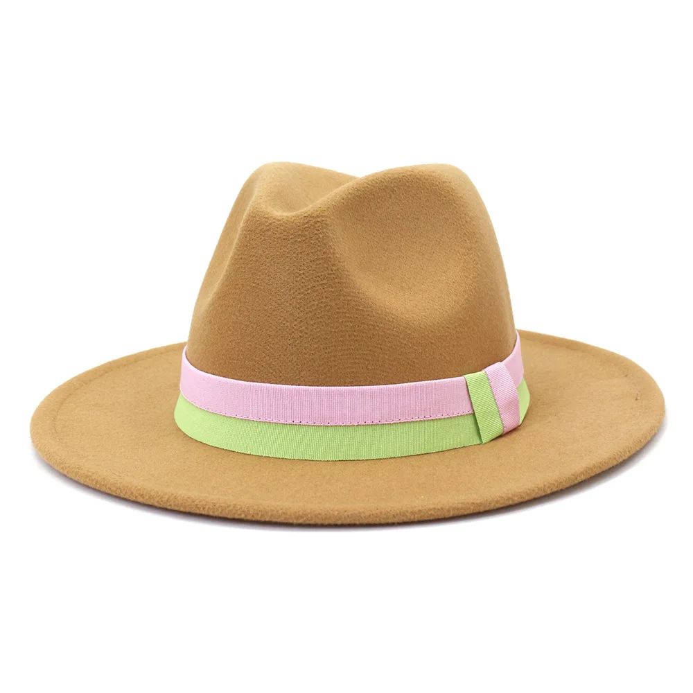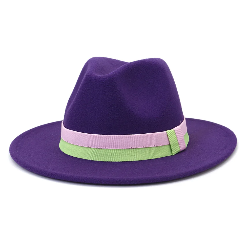 Шляпа-федора для женщин и мужчин, фетровая шляпа от солнца с ремнем, с широкими полями, зеленая розовая