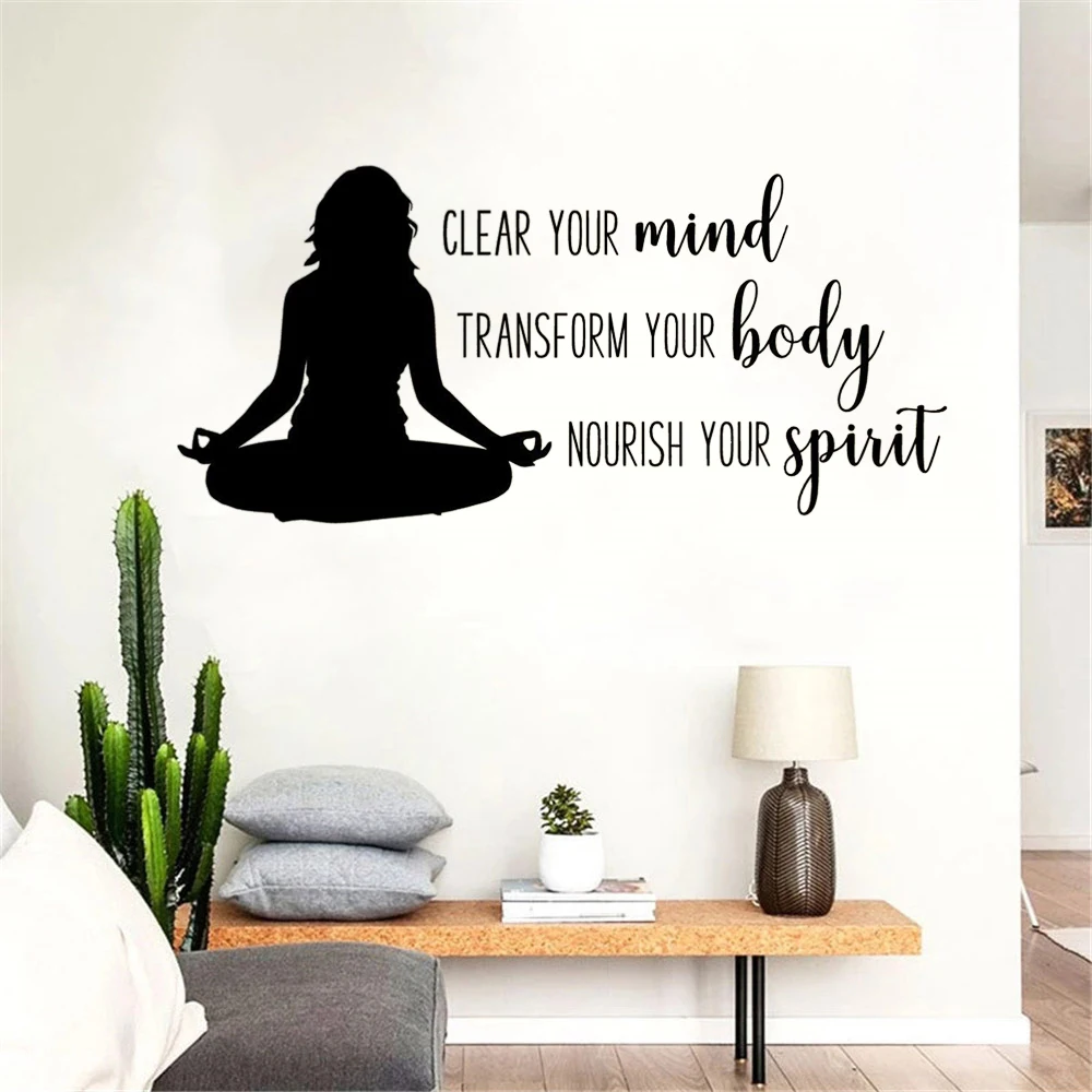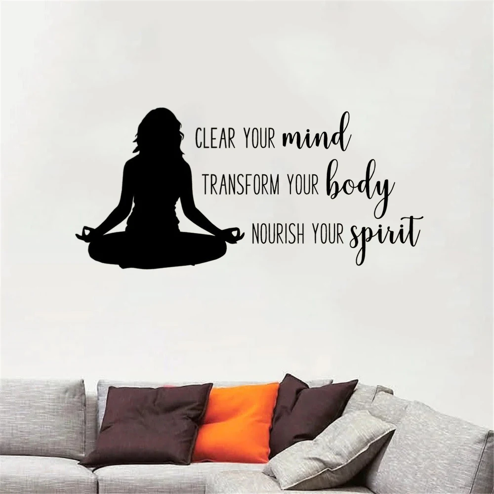 Йога Цитата Наклейка на стену ум тело дух наклейка на стену спальня виниловая наклейка на стену спортзала фитнес домашний декор