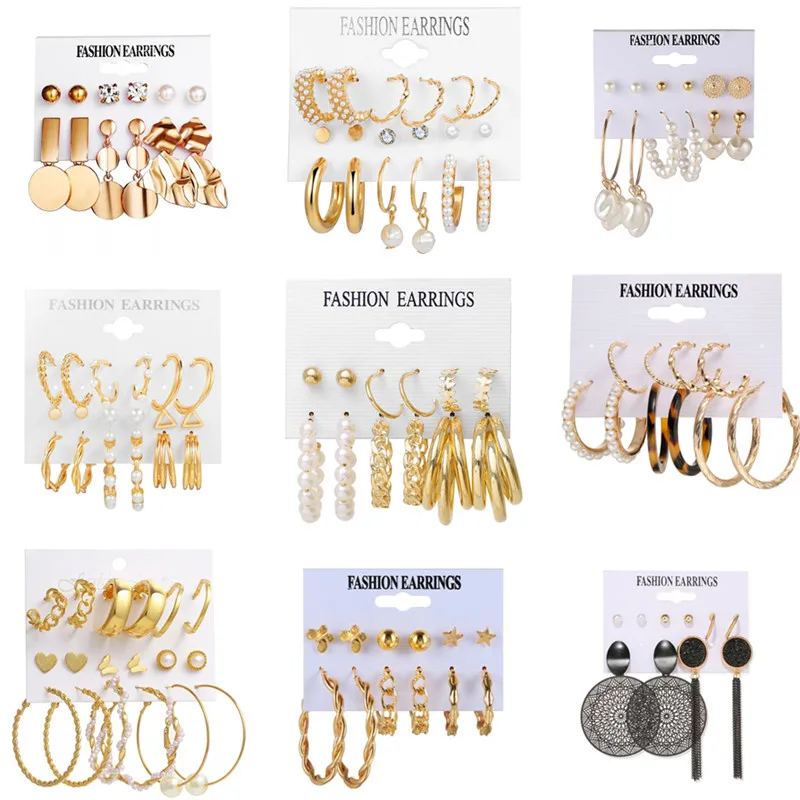 WUKALO, модные золотые серьги-кольца с жемчугом, Комплект сережек д...