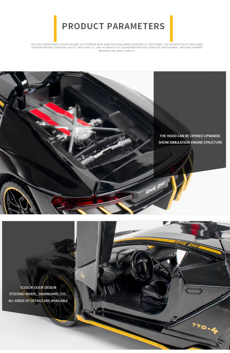 Модель автомобиля 10: 9 LP770-4 Centenario, модель автомобиля с высокой степенью имитации, модель игрушечного автомобиля со звуком и светом, Коллекционная модель автомобиля, подарок для детей