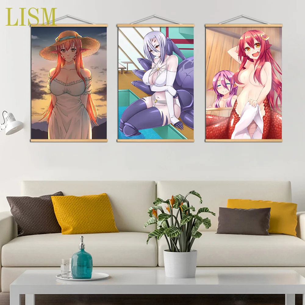 Монстр мусумме не Iru Nichijou мальчики аниме постер манга украшение на стену, принты с твердой древесиной подвесной свиток