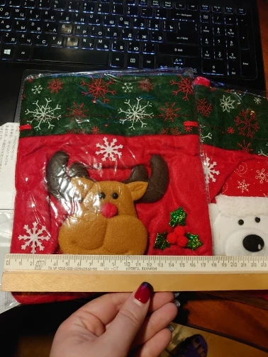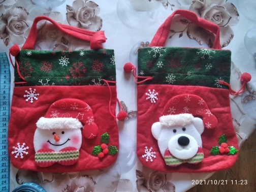 Посылка пришла меньше чем за месяц. Доставка новой почтой вместе с ещё папой посылок. Мешочки небольшие, есть ручка и шнурки для того чтобы закрыть его. Материал что-то типа фетра. Детям под конфеты пойдёт, если только не килограмм конфет.
