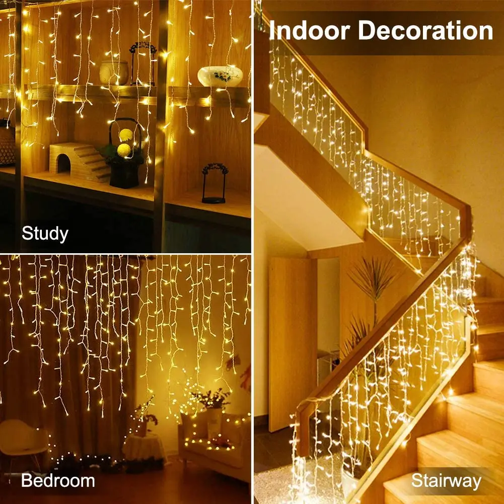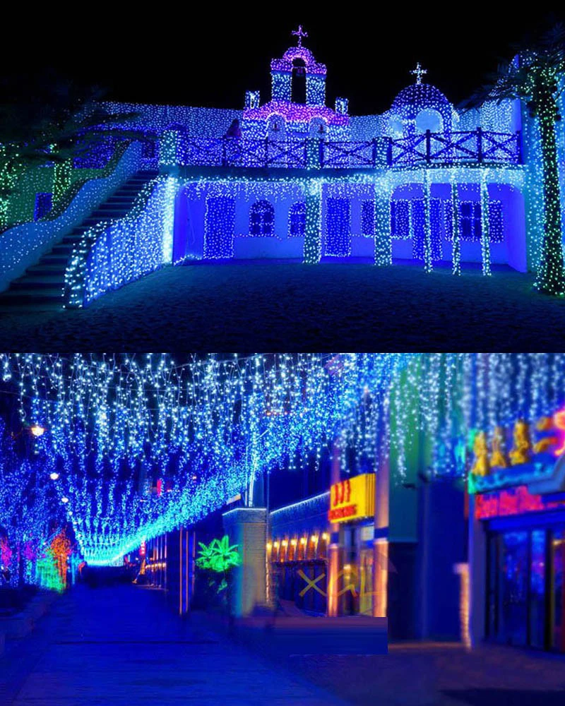 Рождественская уличная Гирлянда-занавессветильник в виде сосулек, 34 м, с европейской вилкой, водонепроницаемый соединитель для украшения двора
