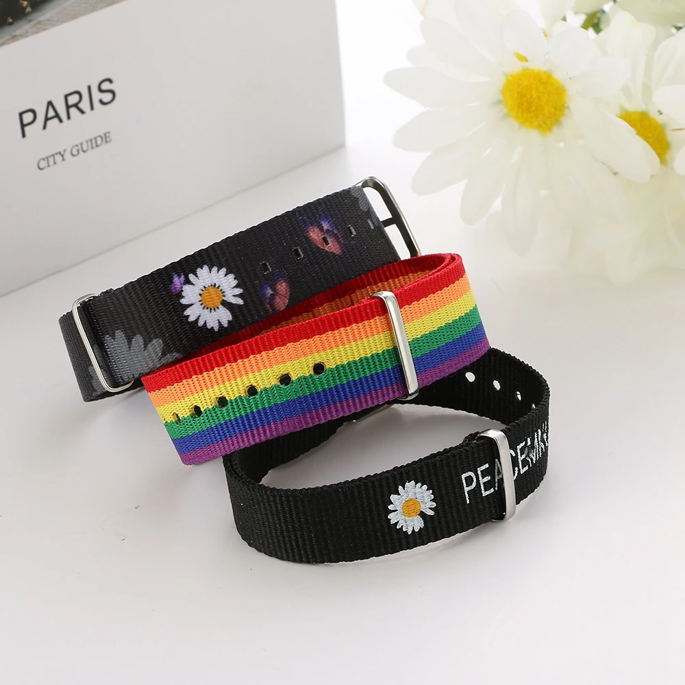 DAXI Новые браслеты на ремешке с ромашками для девочек и мальчиков, женский радужный браслет, браслет из хлопка и льна, регулируемые ювелирные изделия для пар, подарки