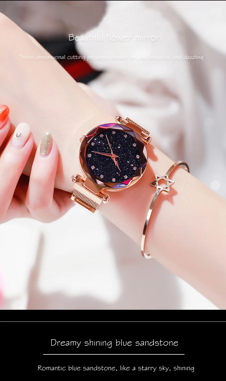 Женские кварцевые часы с сетчатым браслетом, с магнитной пряжкой