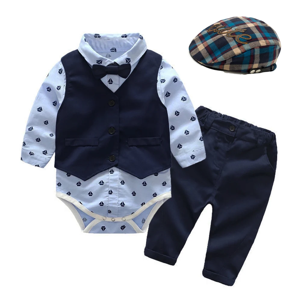 Хлопковая летняя одежда для новорожденных мальчиков, комплект платья на день рождения, белая одежда для младенцев, шапка + комбинезоны, платье для крещения, Подарочный комплект для новорожденных 0-24 месяцев