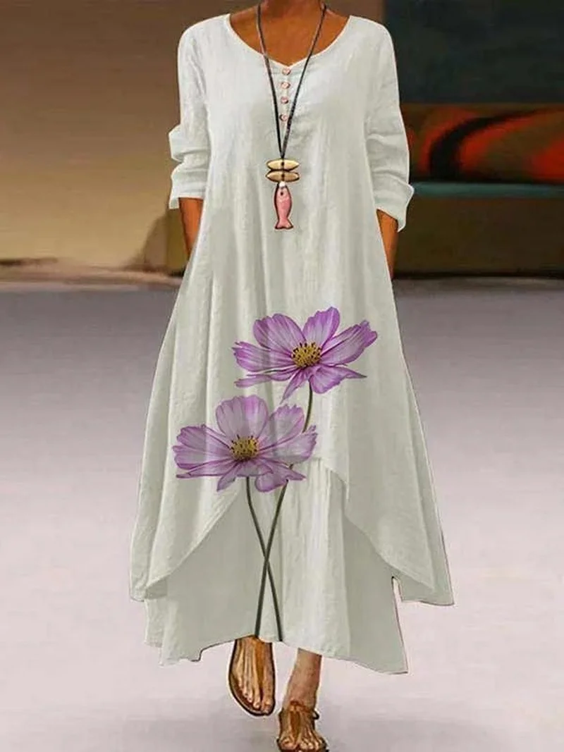 Женское длинное платье с цветочным принтом, повседневное свободное ...