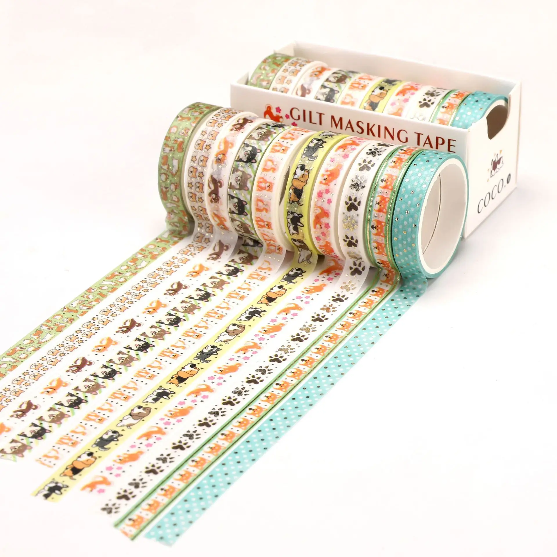 10 pcs cute cat dog Gold Foil Washi Tape Set Scrapbooking Diy Maski...
