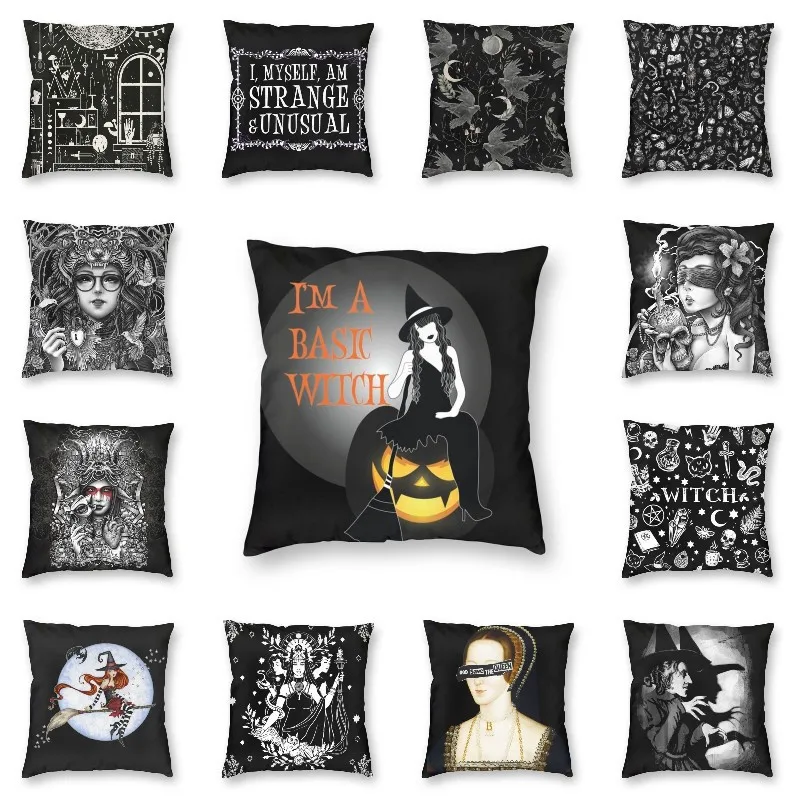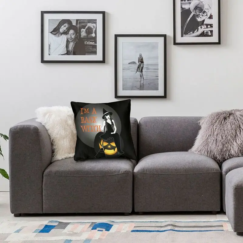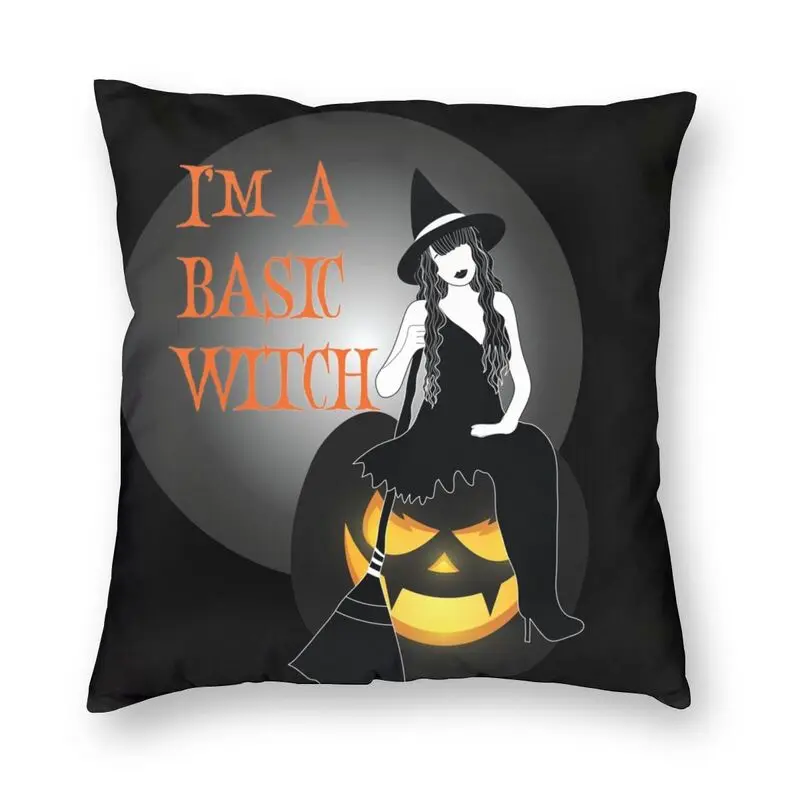 Современные Декоративные наволочки Im A Basic Witch на Хэллоуин, украшение в виде ужасного Призрачного черепа, оккультная Автомобильная подушка