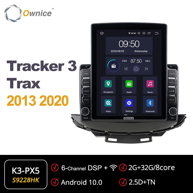 Подходит для Для Chevrolet Tracker 3 Trax 2013 2020Если оригинальное автомобильное радио имеет функцию ниже, совместим ли блок Ownice Head? * Управление рулем --- да* Орингинальный радар или датчик парковки --- да* Отображение информации о состоянии воздуха, состояние открытия двери, настройка автомобиля, статус хоста --- да* Оригинальная AUX / USB/обратная камера --- Да, поддержкаВнимание:Приведенная выше информация только для справки, иногда она может не быть совместима с некоторыми автомобилями, потому что автомобили производятся в разных странах в разных летних вариантах, спасибо за понимание. Блок Ⅱ: 9,7 "вертикальный Экран головное устройство (1024*768)K1-Low ------ AC8227L| Android 6,0 | 1G + 16GB | 2.5D + TN | Радио TDA7786 | Усилитель TDA7388K3-PX5 ------ PX5 | Android 10,0 | 2G + 32GB |2.5D + TN| Радио TDA7786 | Усилитель TDA7388К3-PX6------- PX6 | Android 10,0 | 4G + 64GB | 2.5D + Nano + IPS | Радио TEF6686 | Усилитель TDA7851LK5-High ------ T7 | Android 7,1 | 2G + 32GB | 2.5D + Nano + IPS | Радио TDA7708 | Усилитель TDA7851LK6-Low ------- SC9853 | Android 8,1 | 2G + 32GB | 2.5D + TN | Радио TDA7786 | Усилитель TDA7388K6-High ------ SC9853 | Android 8,1 | 4G + 64GB | 2.5D + Nano + IPS | Радио TDA7708 | Усилитель TDA7851L