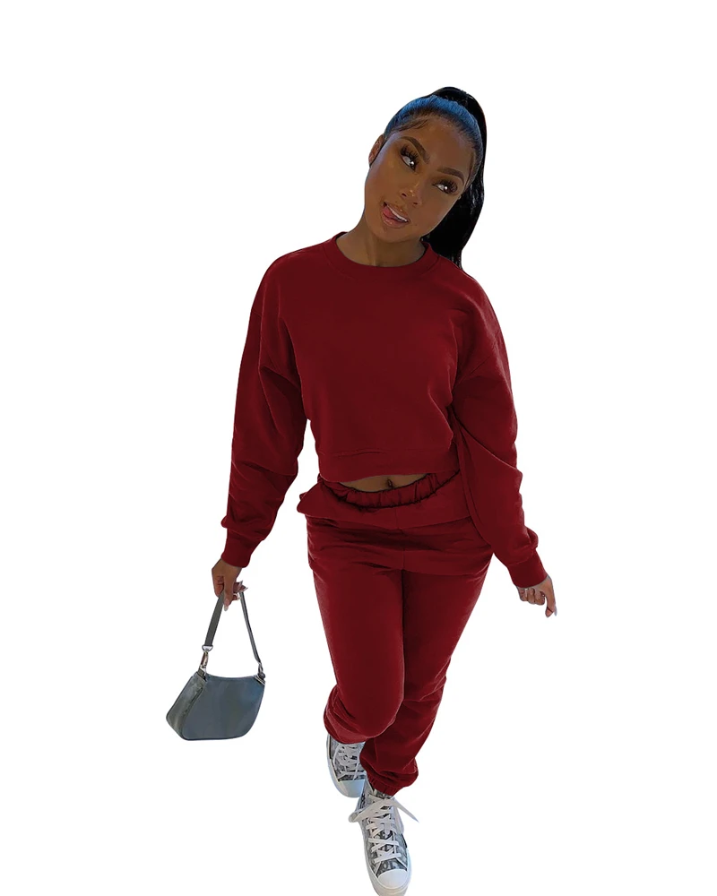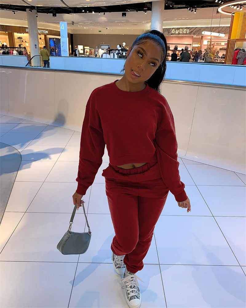 Утепленный спортивный костюм для женщин, комплект из двух предметов, осенне-зимняя одежда, однотонный пуловер, Свитшот и длинные брюки, костюмы, повседневные женские комплекты