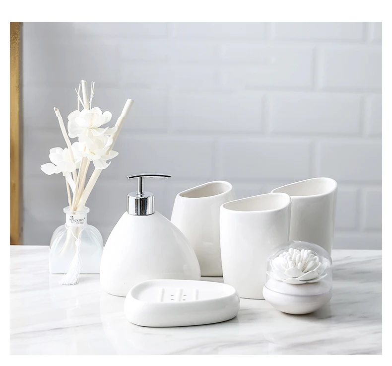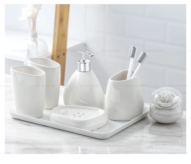 Набор керамических принадлежностей для ванной комнаты, диспенсер для мыла, держатель для зубных щеток, стакан, хлопковая коробка и лоток для ванной комнаты, кухни, белый