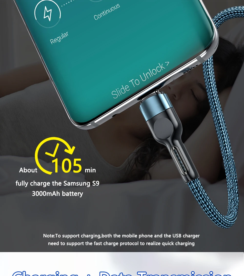 Кабель USB Type-C 3A для быстрой зарядки Xiaomi Huawei Samsung
