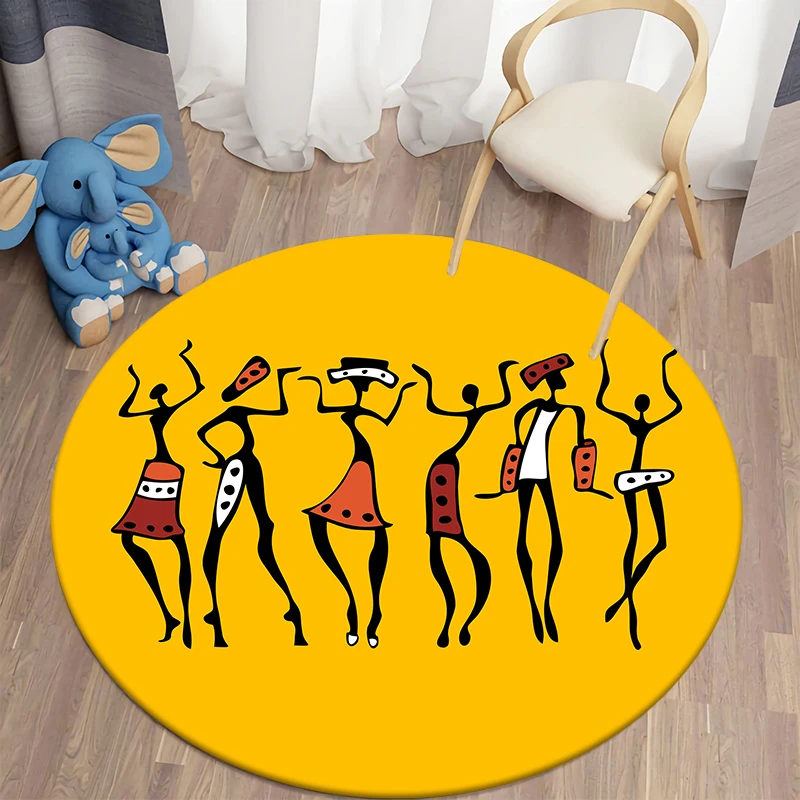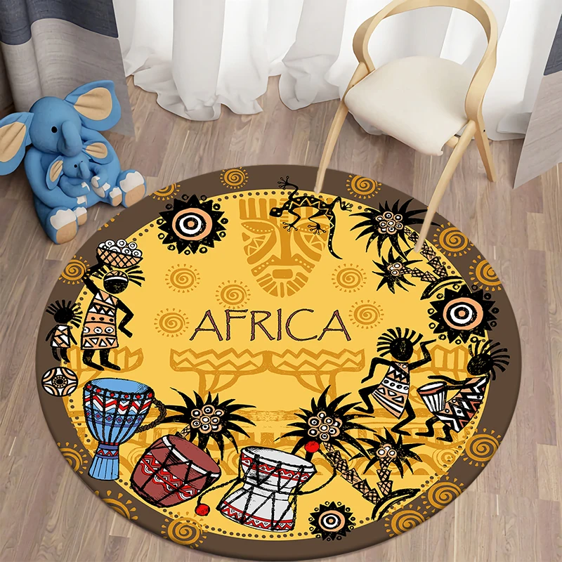 Круглый ковер в африканском стиле для гостиной, напольный коврик, ковер для спальни, нескользящий ретро-ковер с экзотической зоной, коврик для декора детской комнаты