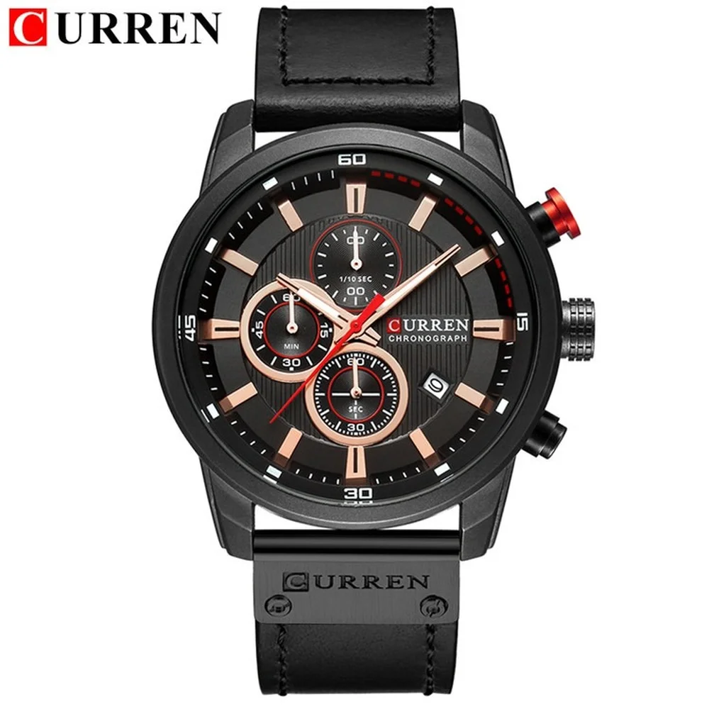 Часы CURREN Мужские Наручные с хронографом, модные спортивные брендовые водонепроницаемые с кожаным ремешком, с датой