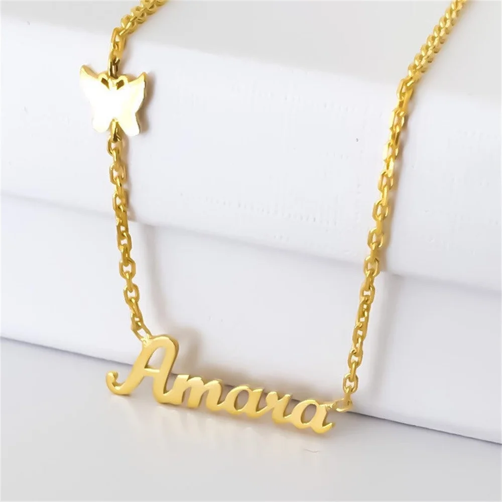 Индивидуальное ожерелье с двойным именем бабочки, женское ожерелье ...