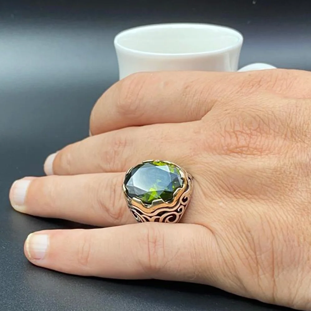 Кольцо мужское из стерлингового серебра 925 к, турецкое ювелирное изделие ручной работы, зеленое, все размеры, КАМЕНЬ Перидот