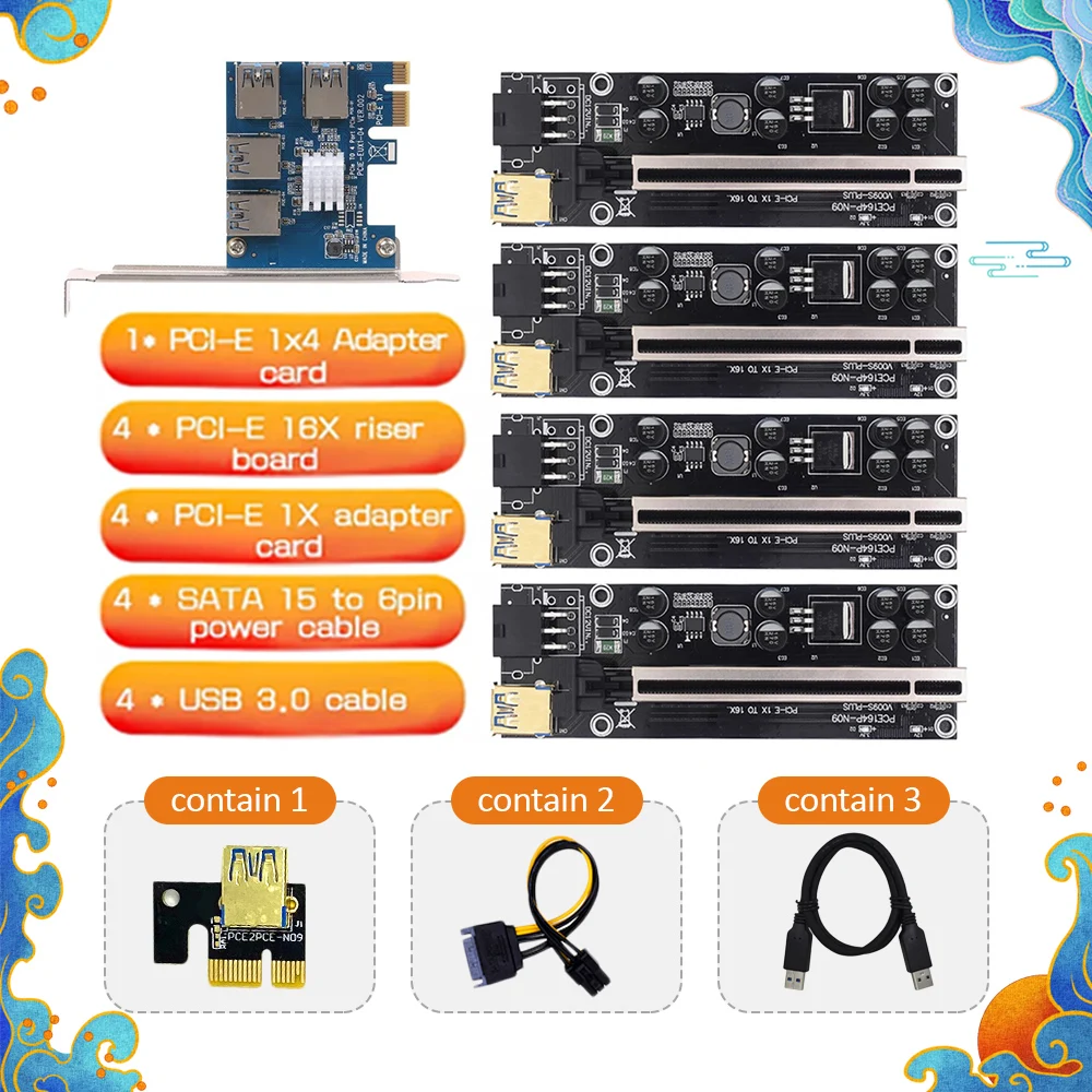 Набор PCI-E Express 1x To16x Riser 009S PLUS, адаптер карты PCIE 1 на 4, USB 3,0, адаптер, множитель карты для майнинга BTC ETH