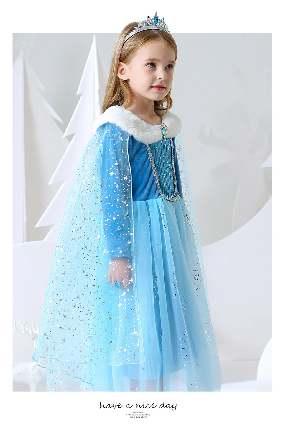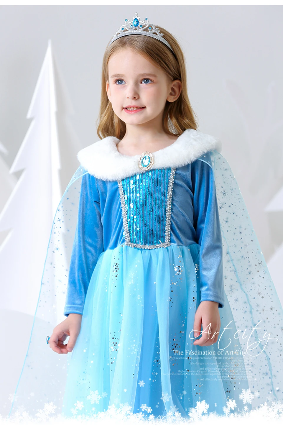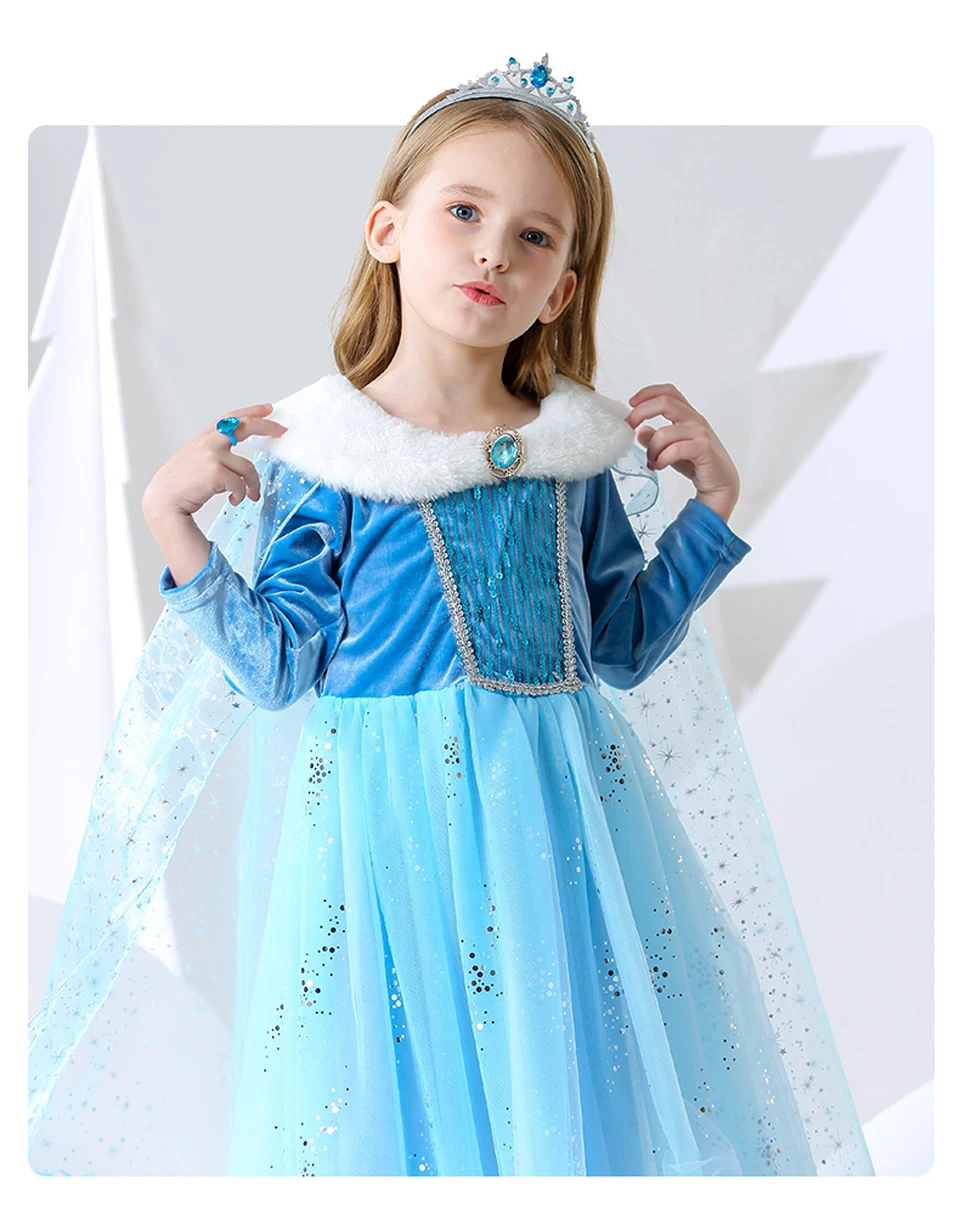 Номер моделиHalloween Velvet Thickened Snow Queen Elsa 2 Birthday Party Costume