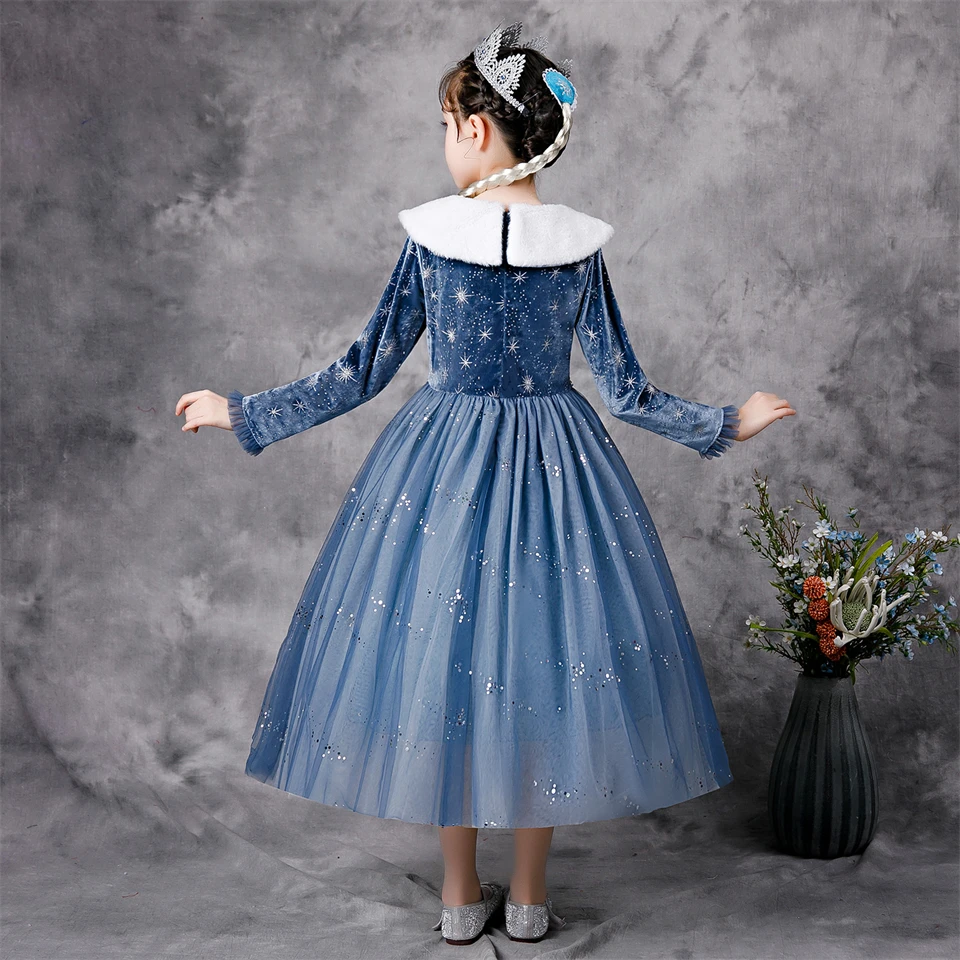 Платье принцессы Эльзы 2 на Хэллоуин, бархатное, Бальное, для девочек, для рождества, карнавала, Рапунцель, косплея, маскарада