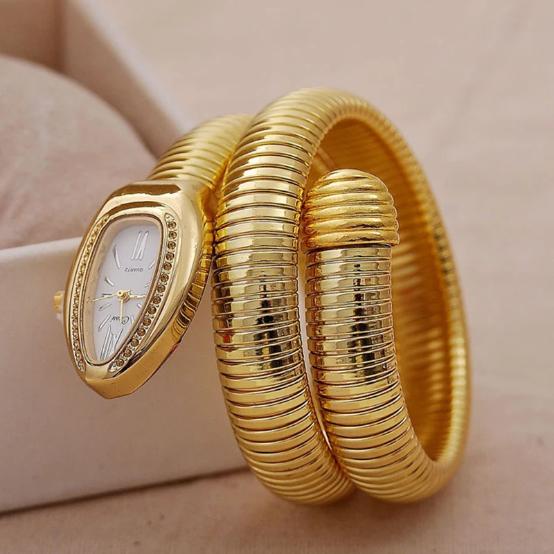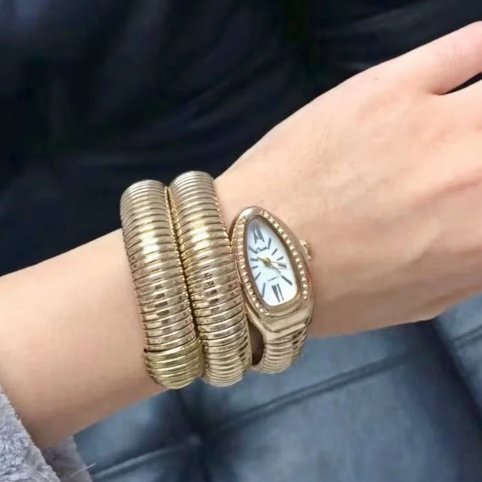 Женские модные часы-браслет со змеиным браслетом, кварцевые часы дл...