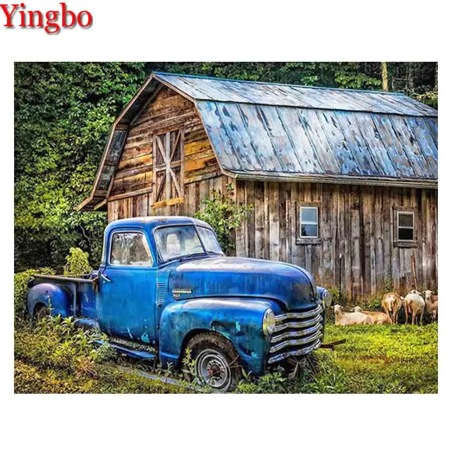 5D алмазная живопись ретро автомобиль ферма пейзаж Картина Стразы Вышивка крестом Алмазная вышивка своими руками строительный подарок ручной работы