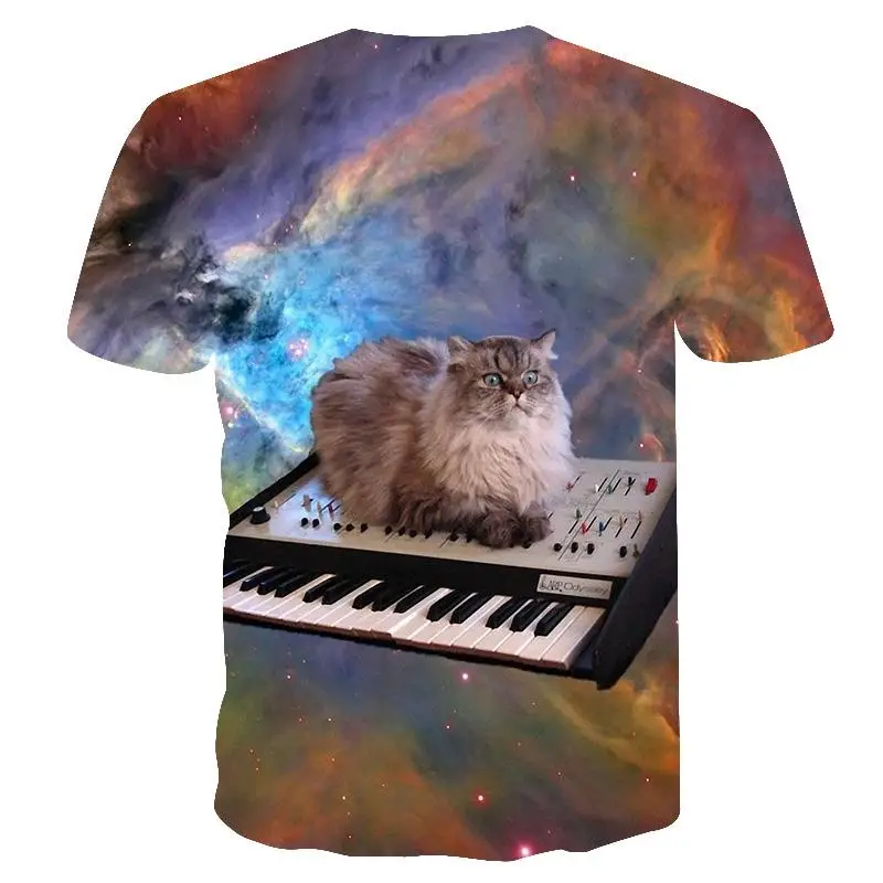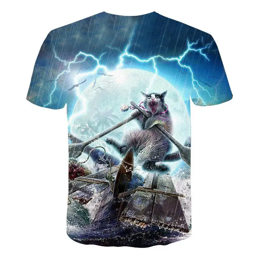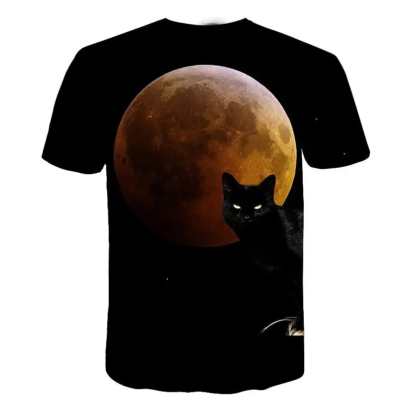Мужская и женская футболка 2021 с 3D принтом, летняя рубашка с круглым вырезом и коротким рукавом с двойным котом, модный и персонализированный новый стиль