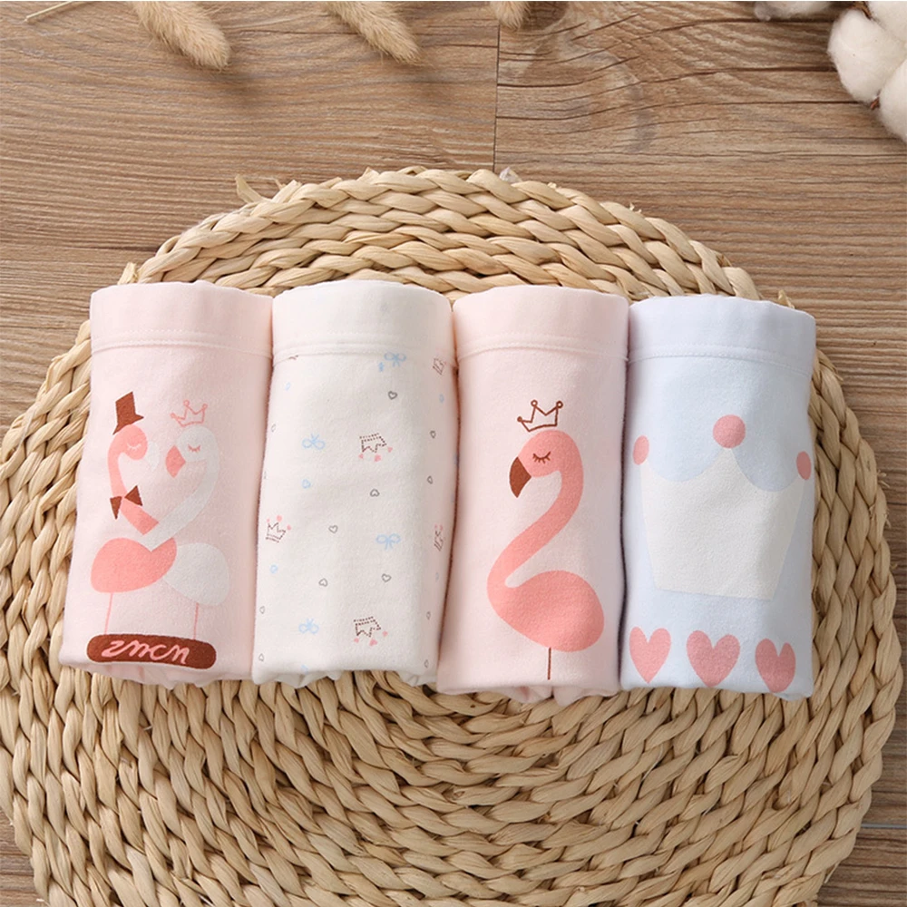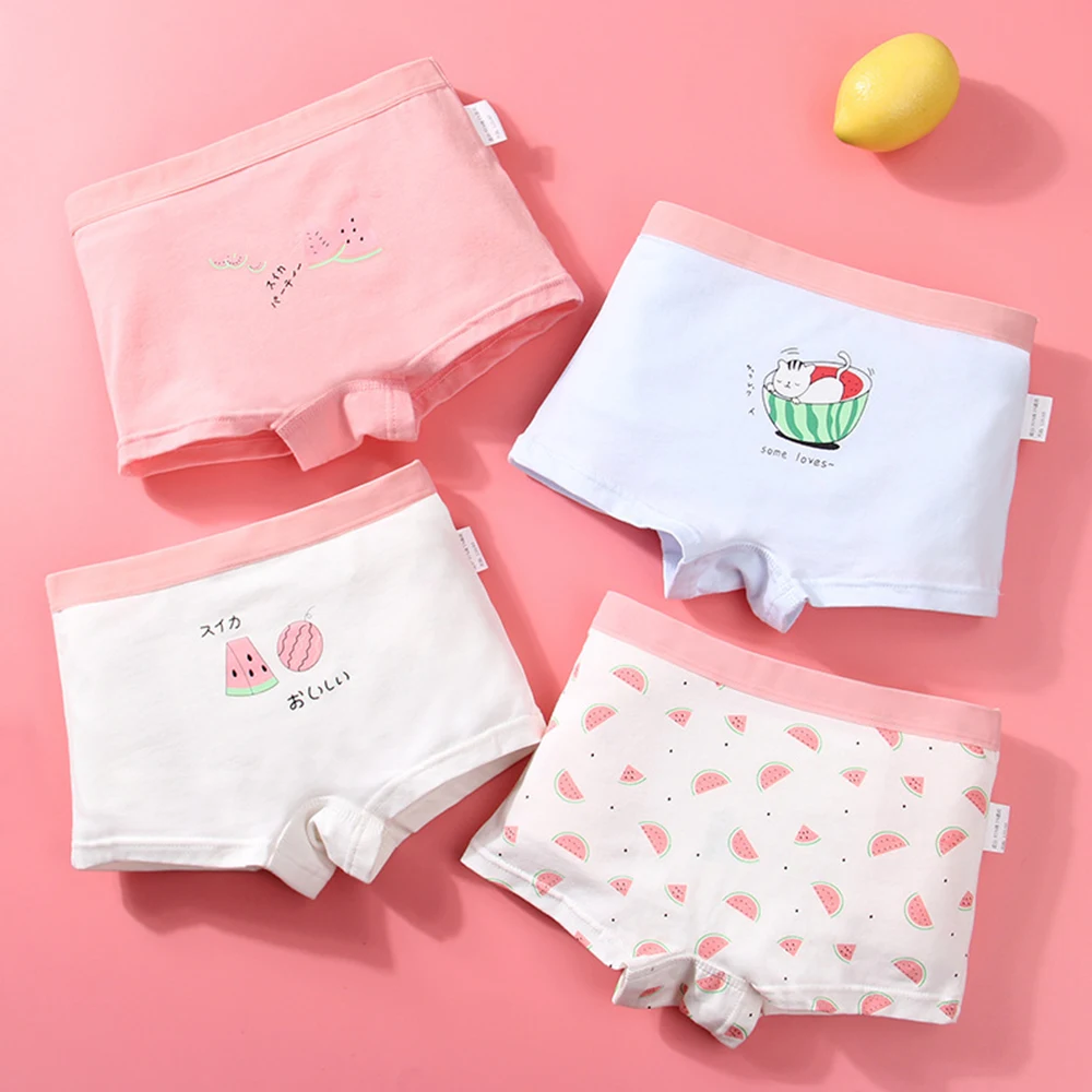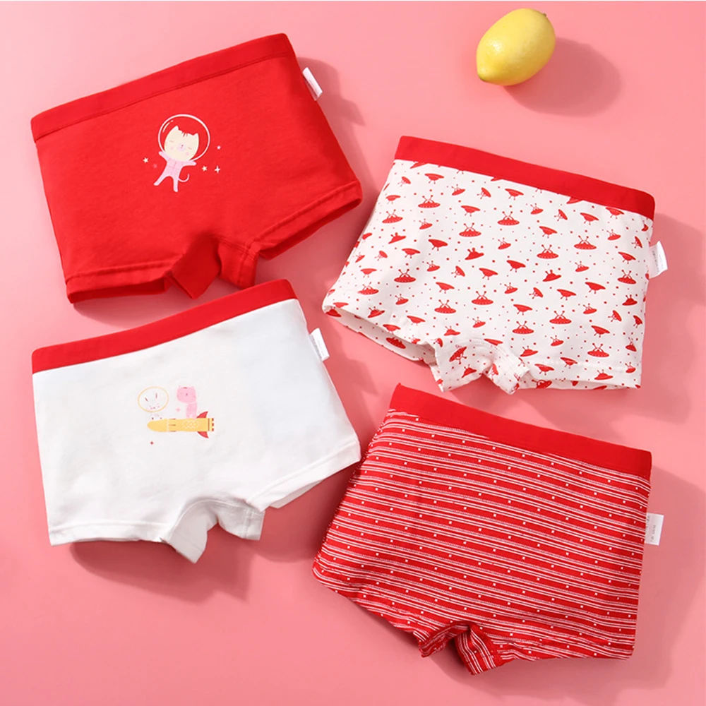 Трусики для девочек, детское хлопковое нижнее белье, детские трусы, сетчатые полосы, милые Мультяшные короткие красные 4 шт.лот